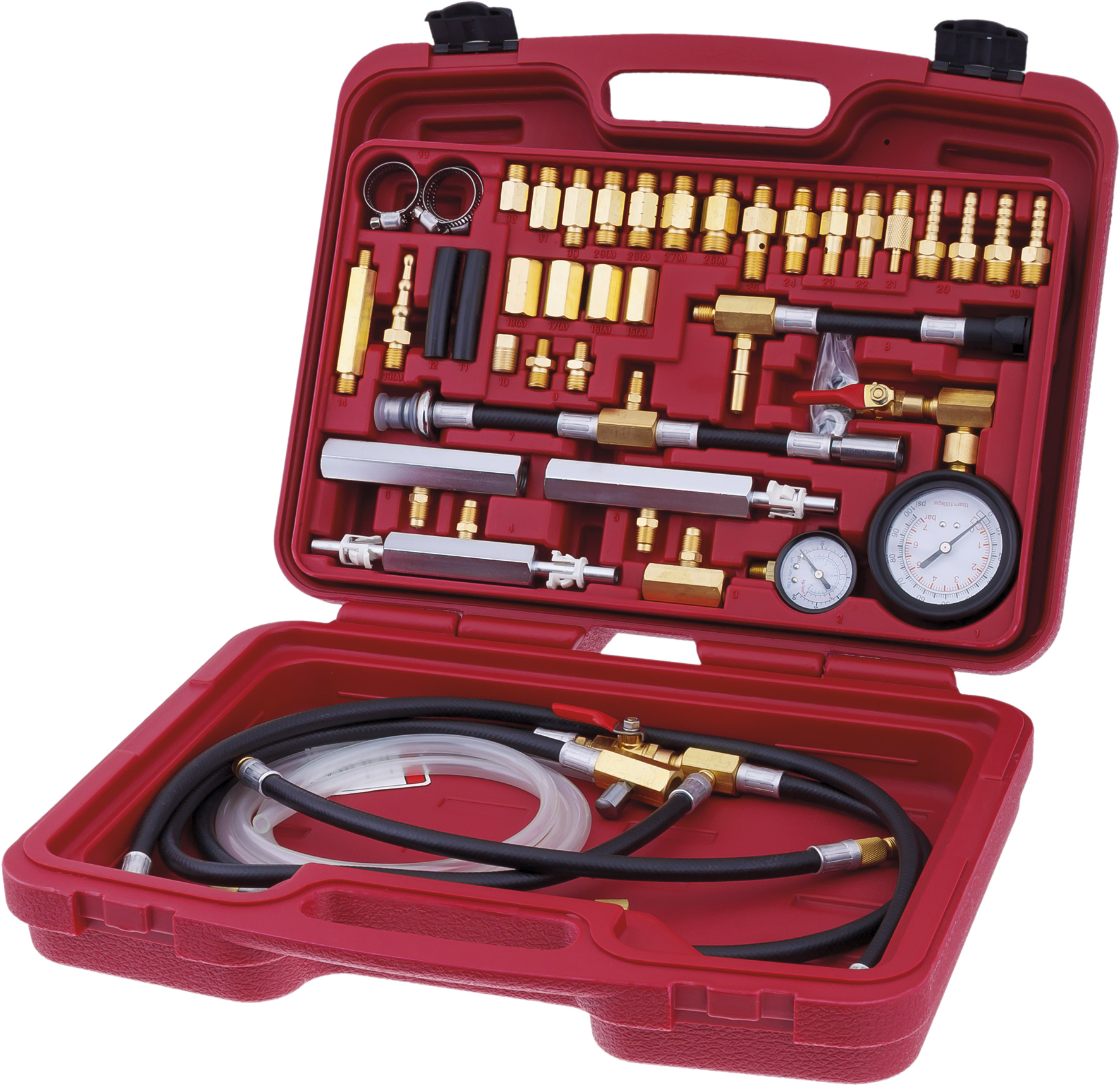 KA-7042 Комплект для проверки давления топлива. Профессиональный набор для измерения давления в топливных магистралях. Известно, что бензонасос должен поддерживать определённое давление топлива. Пониженное давление в рампе при включенном бензонасосе свидетельствует о скором выходе его из строя. Пониженное давление в рампе при простое системы после выключения бензонасоса свидетельствует о неисправности обратного клапана. У разных марок и моделей автомобилей штуцеры топливной рампы отличаются. Для удобства использования набор комплектуется двумя манометрами (1. 0-7 бар; 2. 0-3,5 бар). Набор включает в себя множество адаптеров и переходников для подключения к топливной системе автомобиля: Honda, Acura, Hyundai, Mazda, Suzuki, Toyota, Audi, BMW, Mercedes, Peugeot, Porsche, Saab, VW, Volvo, Ford, GM и другие. В набор входит: 12мм-1,25 адаптер манометр (0-7 бар) 12мм-1,5 адаптер манометр (0-3,5 бар) адаптер 12мм-1,5 * 10мм-1,0 * 1-9/16” 1/4” NPT адаптер с клапаном адаптер 12мм-1,5 * 10мм-1,0 * 1-1/4” быстрый соединитель для GM адаптер 12мм-1,5 * 8мм-1,0 * 5/16” 2.2К адаптер для GM хомуты T.B.I. адаптер для GM 13” адаптер для шланга Ford пружинный адаптер для Ford шланг с регулятором адаптер для Ford шланг C.I.S. Bosch адаптер 12мм-1,5 штекер * 8мм-1.00 базовый шланг 24” 1/4*1/4” заглушка адаптер под шланг 12мм-1,5*5/8-18мм*1-9/16” 5/16” шланг соединитель 1/4РТ-19 1/4” шланг соединитель 14мм-1,5 адаптер 12мм-1,5 штекер * 8мм-1.00 * 3” соединитель 5/8-18 5/16*1/4” NPT адаптер под шланг 16мм-1,5 1/4*1/4” NPT адаптер под шланг адаптер 12мм-1,5*5/8-18мм-1,5*1-9/16” адаптер для HONDA адаптер 12мм-1,5*16мм -1,5*1-9/16” 8мм*1,0 адаптер адаптер 12мм-1,5*14мм -1,5*1-9/16” 10мм-1,0 адаптер адаптер 12мм-1,5*1/4РТ -19*1-9/16” Поставляется в пластиковом кейсе.