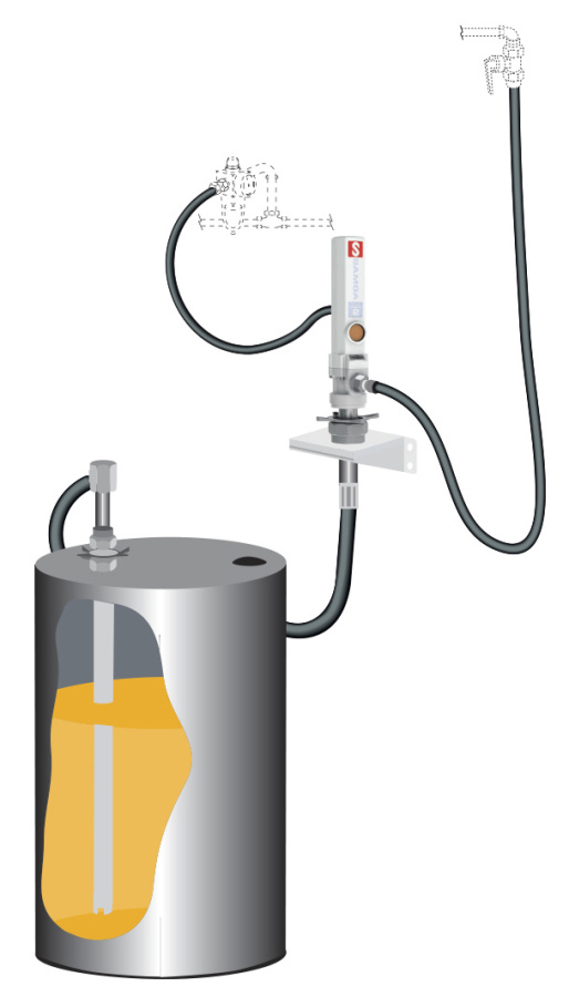 Комплект для раздачи и перекачки масла с насосом (3:1) из бочек 205 л. и емкостей IBCS объемом 1000 л Монтаж насоса - на стену. Комплект включает в себя: 353120 - Насос поршневой пневматический PumpMaster 2 с коэффициентом сжатия 3:1 (производительность при 150 циклах/мин - 10 л/мин, макс. производительность 35 л/мин, расход воздуха 180 Нл/мин (при 6 бар и 200 циклах в минуту) 367102 - Комплект для подсоединения насоса: настенный кронштейн, трубка для всасывания длиной 1060 мм диам. 42 мм с обратным клапаном, регулируемая по высоте, переходник под бочку 2" и резиновый шланг для всасывания 2 м х 3/4". 362910 - Комплект соединительных шлангов для насоса PumpMaster 2 - 246010: воздушный шланг 1 м с фитингами,1/4" BSP (MM ), - 253114: быстроразъемное пневматическое соединение 1/4" BSP (F), - 945516: соединительный переходник 1/2" BSP (M) x 1/4" BSP (F), - 259014: быстроразъемное пневматическое соединение 1/4" BSP (M), - 362101: шланг для масла 1 м x Ø 1/2" 1/2" BSP (MM ).