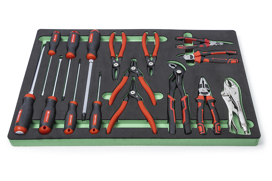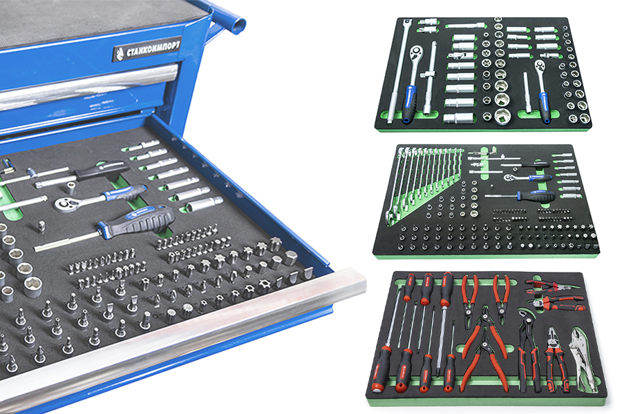 Данный комплект можно назвать как стартовый так как включает в себя ручной инструмент с посадочным квадратом 1/4, 3/8 и 1/2 дюйма, большое количество и разновидности бит, отвертки, губцевый инструмент и съемники стопорных колец, что вполне достаточно для выполнения довольно широкого спектра проводимых работ. Весь инструмент изготовлен из высокачественой инструментальной стали с соблюдение всех стандартов ГОСТ и DIN. Характеристики: Размер ложемента: 570х385х30 мм. Материал ложемента: EVA foam. Упаковка: картонная коробка. Количество предметов: 233 шт. Количество ложементов в комплекте: 3 шт. Комплектация: Торцевые головки на 1/4 ” - 4, 4.5, 5, 5.5, 6-14 мм Торцевые головки длинные на 1/4” - 4, 5, 7, 8, 9, 10 мм Торцевые головки E-Star на 1/4” - Е4, E5, Е6, Е7, Е8 Ключ трещоточный с быстрым сбросом на 1/4”, 45 зубов Отверточная рукоятка на 1/4”, длинна 150 мм Вороток Т-образный на 1/4”, длинна 110 мм Удлинители на 1/4” - 50, 75 мм Кардан шарнирный на 1/4”, длинна 40 мм Торцевые головки со вставкой на 1/4”: - Шестигранные HEX 3, 4, 5, 6 мм - Шлицевые Slot 4, 5.5, 6.5, 7 мм - Крестовые Philips РН0, РН1, РН2 - Pozidriv PZ0, PZ1, PZ2 - Torx Т8, T9, Т10, Т15, Т20, Т25, Т27, Т30 - Torx BO ТH8, TH9, ТH10, ТH15, ТH20, ТH25, ТH27, ТH30 Адаптер для бит 1/4"х1/4" Отвертка для бит с магнитом 1/4" Биты на 1/4": - Шестигранные HEX BO 2, 2.5, 3, 4, 5, 6 мм - Torx T5, T6 - Torx BO TH7 - Keyway M5, M6, M7, M8, M9 - Much Tooth M5, M6, M8 - Five Star 10, 15, 20, 25, 27, 30, 40, 46 - Square 0, 1, 2, 3 - Spanner 6, 8, 10 - Torq 4, 6, 8, 11 - Butterfly 1, 2, 3 - Tri-Wing 1, 2, 3, 4 Торцевые головки на 3/8” - 10, 11, 12, 13, 14, 15, 16, 17, 18, 19 мм Торцевые головки длинные на 3/8” - 10, 11, 12, 13, 14, 15 мм Торцевые головки E-Star на 3/8” - Е10, E11, Е12, Е14, Е16, E18 Ключ трещоточный с быстрым сбросом на 3/8”, 45 зубов Кардан шарнирный на 3/8” 55 мм Удлинитель на 3/8” - 125 мм Адаптер для бит 3/8"х5/16" Торцевая головка свечная на 3/8” - 14 мм Торцевые головки на 1/2” - 13, 14, 15, 16, 17, 18, 19, 20, 21, 22, 24, 27, 30, 32 мм Торцевые головки длинные на 1/2” - 16, 17, 18, 19, 22 мм Торцевые головки E-Star на 1/2” - Е20, Е22, Е24 Ключ трещоточный с быстрым сбросом на 1/2”, 45 зубов Кардан шарнирный на 1/2”, 75 мм Вороток Т-образный на 1/2”, 250 мм Вороток шарнирный на 1/2”, 450 мм Удлинители на 1/2” - 125, 250 мм Торцевые головки свечные на 1/2” - 16, 21 мм Торцевые головки со вставкой на 1/2”: - Шестигранные HEX: 14 мм - Torx: T70 Угловые ключи шестигранные - 1.27, 1.5, 2, 2.5, 3, 4, 5 мм Ключи комбинированные - 8, 9, 10, 11, 12, 13, 14, 15, 16, 17, 19, 22, 24 мм 3-сторонний адаптер на 1/2"Mх3/8"F Адаптер для бит на 1/2"х5/16", 40 мм Биты на 5/16": - Hex 7, 8, 10, 12 мм - Slotted 8, 10, 12 - Phillips PH2, PH3, PH4 - Pozidriv PZ2, PZ3, PZ4 - Torx T40, T45, Т50, Т55, Т60 - Torx BO TH40, TH45, TH50, TH55, TH60 - Keyway M10, M11, M12, M13 - Much Tooth M10, M12 - Five Star 50 Плоскогубцы, 180 мм Клещи переставные, 250 мм Бокорезы,…