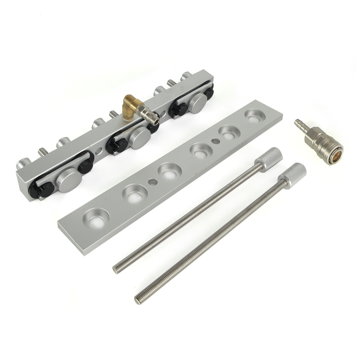 Комплект расширения предназначен для проведения теста на пневмоплотность форсунок на стендах Launch CNC. Данный комплект подходит для стендов Launch CNC 605A GDI в комплектации которого входит обычная топливная рампа. Воздух имеет меньшую плотность чем бензин и тестовая жидкость. Проведение такого теста позволяет быть уверенными в герметичности форсунок при подаче топлива. Для проведения теста, необходимо подключение сжатого воздуха. Комплектация Топливная рампа Прижимная планка Шпильки регулировочные 250 мм Адаптер для подключения сжатого воздуха Мама елочка