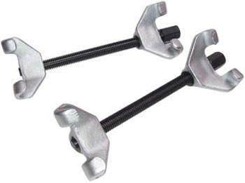 KA-4003 Комплект съемников (стяжек) пружин 300 мм. Предназначен для сжатия пружин подвески длиной до 300 мм. Возможность работать со снятыми амортизационными стойками. Возможность работать в ограниченном пространстве. Двойные захваты-крюки для надёжной фиксации. Силовой болт из закалённой стали. Для вращения силового болта можно использовать вороток или трещотку с посадочным квадратом 1/2", а так же гаечный ключ или торцевую головку на 24 мм. Комплект набора: Стяжки пружин до 300 мм - 2 шт. Картонная коробка - 1 шт. Инструкция - 1 шт. Для большего удобства использования и долговечности инструмента, смазывайте периодически силовой болт смазкой типа Литол, Солидол. Сжатая пружина обладает большой потенциальной энергией! Обязательно используйте защитные очки! Использование допускается только квалифицированным персоналом с соблюдением техники безопасности! Запрещается использовать в качестве привода пневматический ударный инструмент!