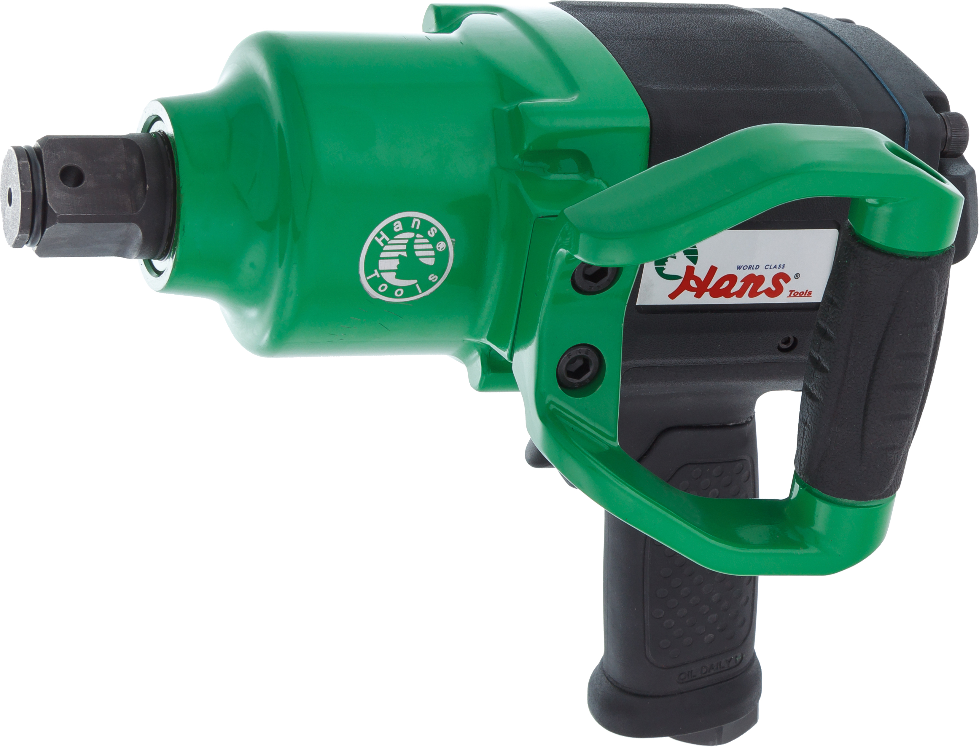 Пневмогайковерт Hans 88117 — качество и мощность, но существенно легче. Пневмогайковерт Hans 88117 – это инструмент, предназначенный в первую очередь для работы в тяжелых условиях и под интенсивной нагрузкой. Обновленная модель совмещает в себе компактные размеры,благодаря пистолетному типу, выверенную удачную конструкцию и крайне прочный композитный корпус с большим ресурсом работы и достаточной мощностью. Механизм Twin Hammer с двумя одинаковыми молотами обеспечивает мгновенный сбалансированный 'удар' и высочайший крутящий момент на старте, высокие характеристики прочности ударного механизма делают механизм незаменимым в автомобильной индустрии, предназначен для работы в тяжелом режиме, несложный механизм облегчает эксплуатацию инструментов Hans 88117 – выносливая и прочная модель от Hans. Этот пневматический гайковерт можно рекомендовать к использованию не только на грузовых СТО и шиномонтажных постах, но и на производстве. Гайковерт имеет максимальное рабочее усилие 2441Нм, при этом вес всего 7,4 килограмма. С пневмогайковертом необходимо использовать только торцевые головки и аксессуары ударного типа. Они меньше изнашивают крепеж и посадочный квадрат гайковерта, а также более устойчивы к импульсным нагрузкам, получаемым от привода гайковерта. Как правило, ударные головки и сопутствующие приспособления типа карданов и удлинителей изготавливают из хромомолибденового сплава и покрывают черным фосфатным покрытием. Особенности подготовки воздуха. Для всех пневмогайковертов Hans величина потребления воздуха, необходимая для работы инструмента на полную мощность, обычно указана «с запасом». У 88117 потребление воздуха находится на уровне 255 л/мин. Исходя из этого, минимальные рекомендуемые модели компрессоров такие - 380 В — СБ4/С-270.АВ678. В связи с тем, что обычный воздух имеющий определенную влажность, к тому же загрязненный «смесью» из компрессорного масла и влаги, конденсируемой в рессивере компрессора, способен навредить двигателю любого пневмоинструмента, то перед попаданием в инструмент ему требуется осушение и очистка. Для этой цели применяют оборудование для подготовки воздуха: сспециальные фильтры-осушители для компрессора очищающие воздух от влаги и других примесей, а также лубрикаторы для пневматического инструмента, обогащающие воздушный поток маслом. Оба этих приспособления часто выпускаются в виде единого изделия – модульной группы для пневмолинии. Рекомендованные модели для пневмогайковерта 88117 - Модульная группа 8600-4015. Пневмошланги должны обладать подходящей пропускной способностью и соответствовать общим параметрам: быть маслостойкими и способным выдержать максимальное рабочее давление не менее 10 атмосфер. Для модели 88117 подходят шланги сечением 19 мм или 3/4 дюйма. Для монтажа пневмолинии при несовпадении сечений штуцеров оборудования и шланга вам могут понадобиться переходники, а для разветвления линии вам будут необходимы специальные фитинги. Кроме того, в целях удобства и скорости работы рекомендуется применять быстросъемные соединения. Если длина шланга от точки подключения превышает 10 м, рекомендуется использование линейного лубрикатора, который монтируется на линию непосредственно перед гайковертом.