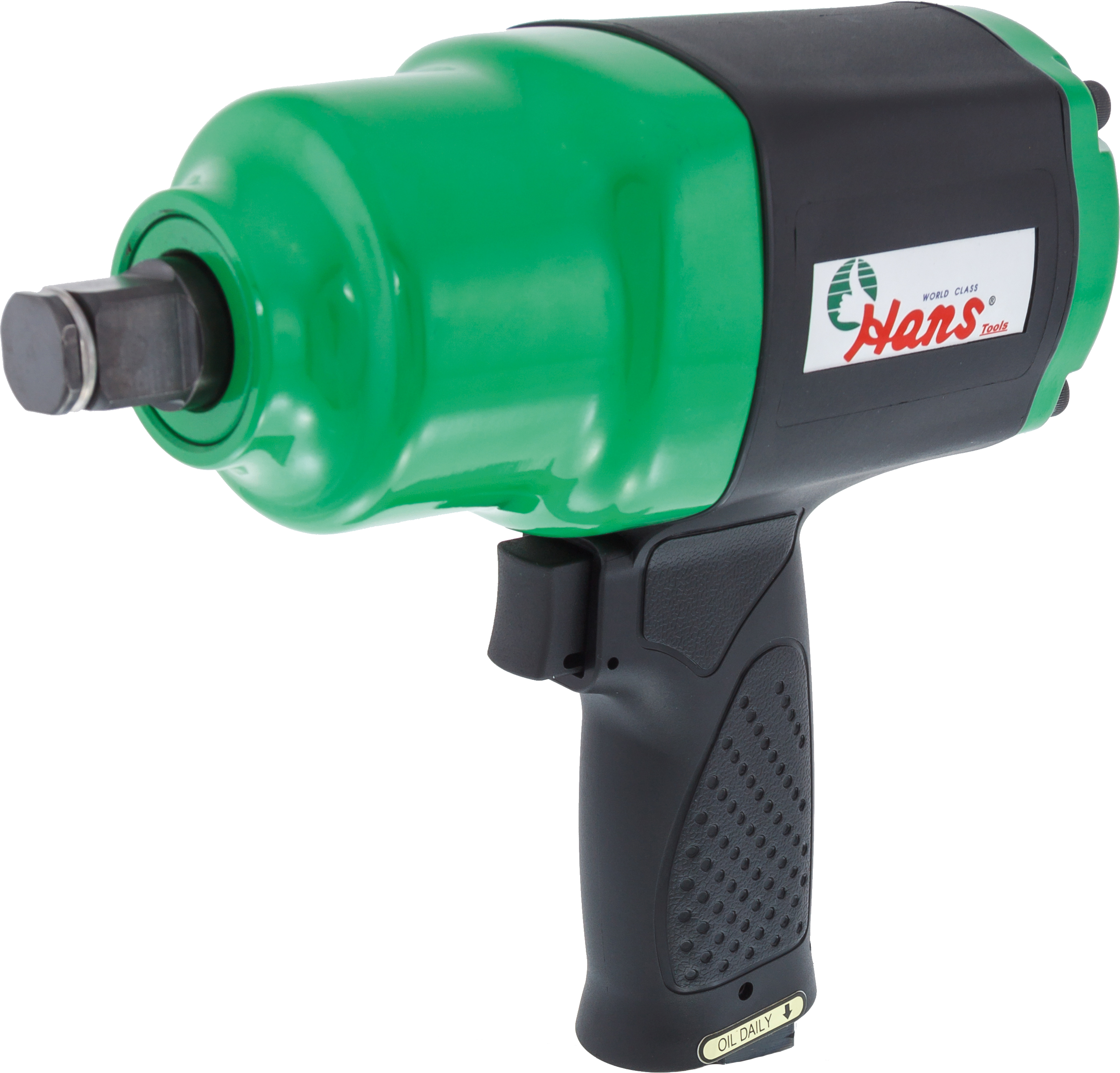 Композитный пневматический гайковерт 3/4", 1763 Нм Наибольший крутящий момент: 1763 Нм Наименьший крутящий момент: 271-1221 Нм Скорость: 6500 об/мин Механизм: новый сдвоенный молоток Выхлоп: с глушителем в ручке Расход воздуха: 6,7 куб. футов / мин Давление воздуха: 90 psi – 6.2 бара Патрубок входного воздушного отверстия: 3/8” PT (трубная резьба) Внутренний диаметр воздушного шланга: 1/2 – 13 мм Посадочный квадрат 1,12” / 28.4 мм Общая длина: 8,85” / 225 мм Вес: 3,89 кг Пневмогайковерт Hans 86117 – это инструмент, предназначенный в первую очередь для работы в тяжелых условиях и под интенсивной нагрузкой. Он совмещает в себе компактные размеры, выверенную удачную конструкцию и крайне прочный композитный корпус с большим ресурсом работы и отличной мощностью. Отличительная особенность модели – ударный механизм типа New Twin Hammer, который является усовершенствованным вариантом классического Twin Hammer. Механизм New Twin Hammer оснащен дополнительной внутренней перегородкой между рабочими бойками, что позволяет бойкам более синхронно осуществлять удары по валу, так как они не трутся друг о друга. В конечном счете это обеспечивает высокий крутящий момент. Кроме того, дополнительная перегородка гарантирует и большую стойкость и самого корпуса механизма. Hans 86117 – безусловно, самая выносливая, прочная и легкая модель от Hans. Этот пневматический гайковерт можно рекомендовать к использованию не только на СТО и шиномонтажах (для грузовых лучше подойдет гайковерт пневматический ударный 1"), но и на производстве. Однако надежность и прочность имеют обратную сторону в виде лишнего веса, который у 86117 составляет 3,89 кг, хотя максимальное рабочее усилие 1763Нм (не стоит путать с пиковым, которое указывают различные производители, у данного гайковерта достигает 2400Нм) позволяет смириться с легким композитным гайковертом весящим менее 4 кг. С пневмогайковертом необходимо использовать только торцевые головки и аксессуары ударного типа. Они меньше изнашивают крепеж и посадочный квадрат гайковерта, а также более устойчивы к импульсным нагрузкам, получаемым от привода гайковерта. Как правило, ударные головки и сопутствующие приспособления типа карданов и удлинителей изготавливают из хромомолибденового сплава и покрывают черным фосфатным покрытием. Особенности подготовки воздуха Для всех пневмогайковертов Hans величина потребления воздуха, необходимая для работы инструмента на полную мощность, обычно указана «с запасом». У 86117 потребление воздуха находится на уровне 190 л/мин. Исходя из этого, минимальные рекомендуемые модели компрессоров такие: •220 В — FIAC СБ4/С-100.АВ360 А; •380 В - FIAC СБ4/С-200 АВ515. В связи с тем, что обычный воздух имеющий определенную влажность, к тому же загрязненный «смесью» из компрессорного масла и влаги, конденсируемой в рессивере компрессора, способен навредить двигателю любого пневмоинструмента, то перед попаданием в инструмент ему требуется осушение и очистка. Для этой цели применяют оборудование для подготовк…