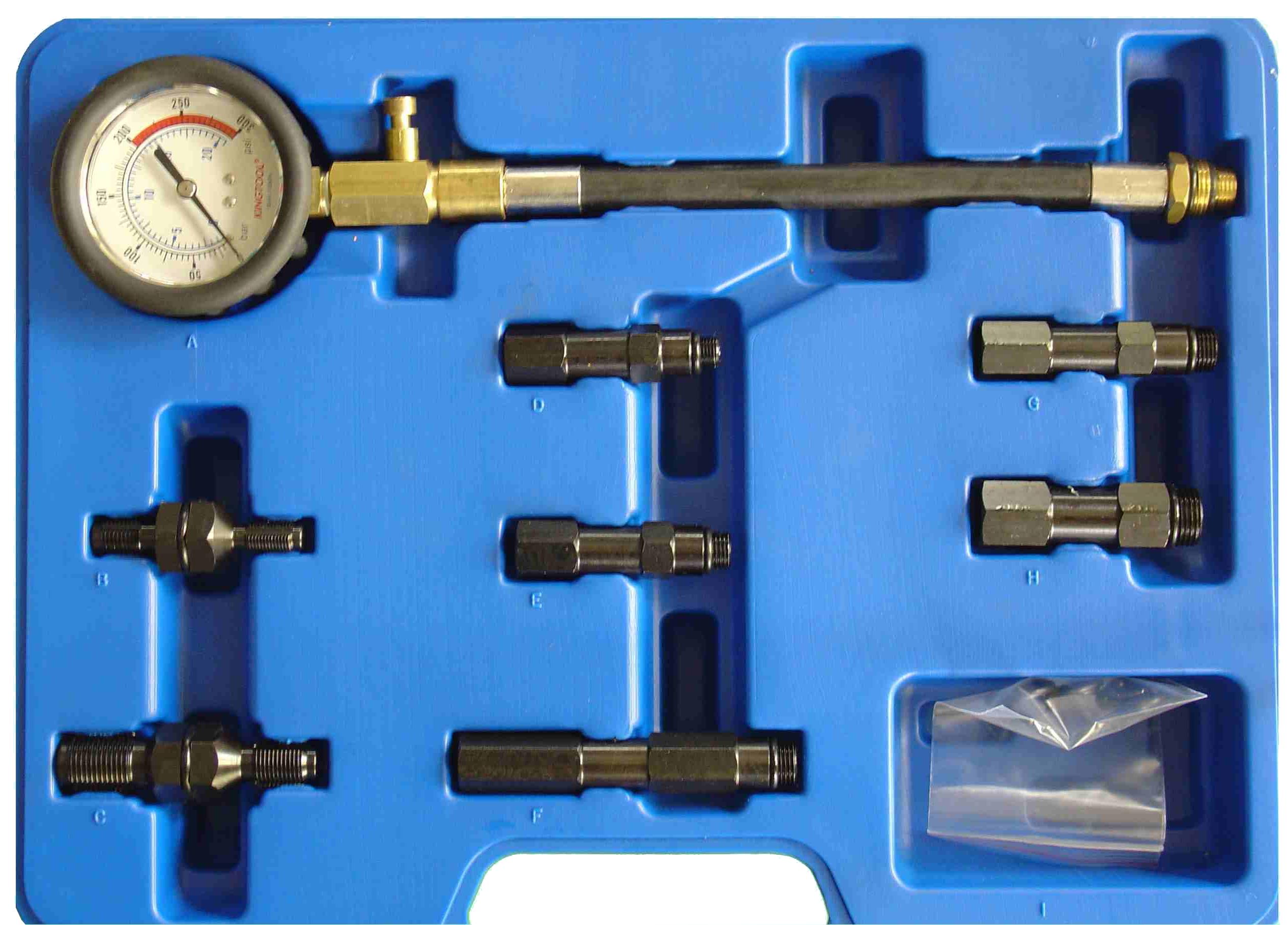 KA-6721KN Набор для тестирования компрессии бензиновых двигателей Набор для тестирования двигателей с резьбой под свечу М10, М12, М14, М18: легок в использовании в комплекте с адаптерами и резьбовыми переходниками адаптеры быстро устанавливаются проверяет состояние ГБЦ специальный клапан позволяет сделать повторный тест без снятия манометра