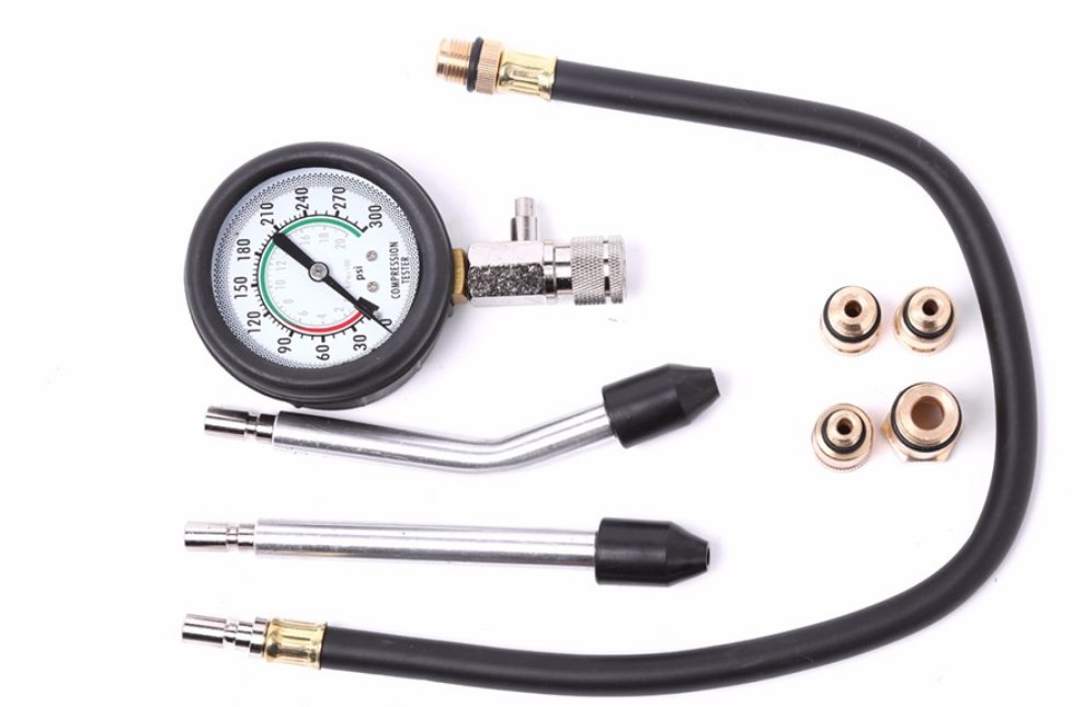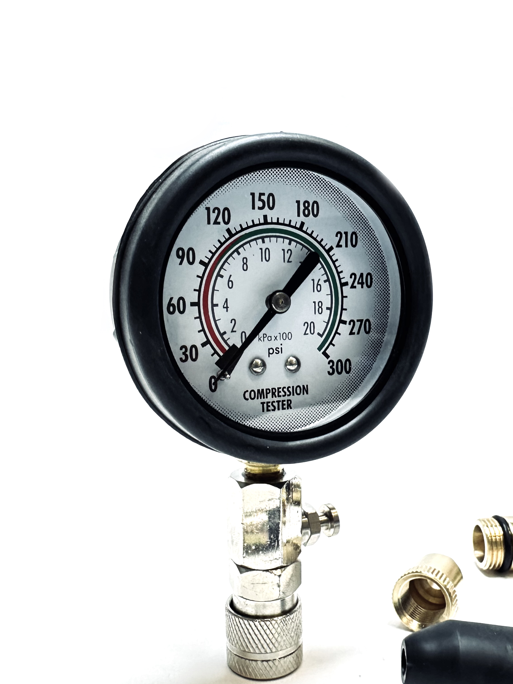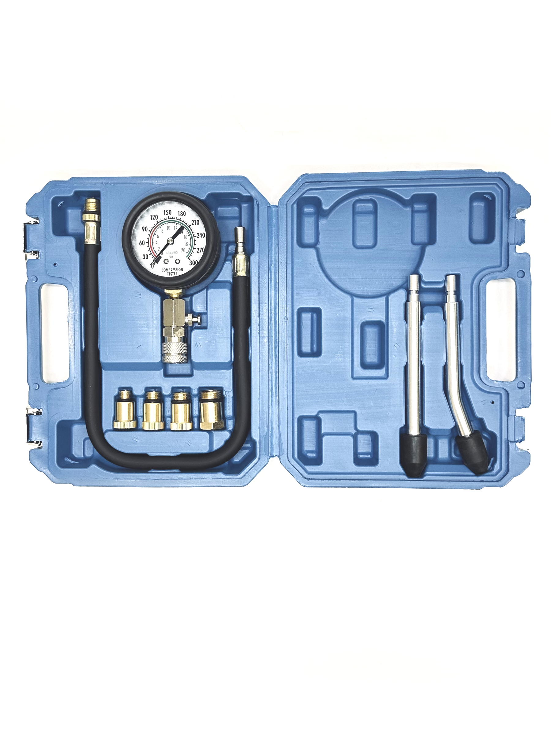 Применяется для измерения компрессии в цилиндрах бензиновых двигателей легковых автомобилей и мотоциклов. Позволяет косвенно оценить состояние ЦПГ, прокладки ГБЦ, впускных и выпускных клапанов. Особенности: Возможность применения в двигателях легковых автомобилей и мотоциклов благодаря наличию четырёх резьбовых адаптеров и двух конусных адаптеров. Резиновая защита манометра для исключения его повреждения. Кнопка сброса давления на манометре. Быстросъём на манометре. Диапазон измеряемой компрессии: 0-21 бар (300 psi) Резьбовые адаптеры для свечей 14 и 18 мм Устройство с клапаном фиксации измеряемой компрессии и кнопкой сброса Гибкий резиновый шланг 460 мм Жесткая прямая насадка 186 мм с резиновым коническим наконечником Жесткая изогнутая насадка 186 мм с резиновым коническим наконечником Адаптеры с клапаном: 5/16" – М10х1.0 5/16" – М12х1.25 5/16" – М14х1.25 5/16" – М18х1.5