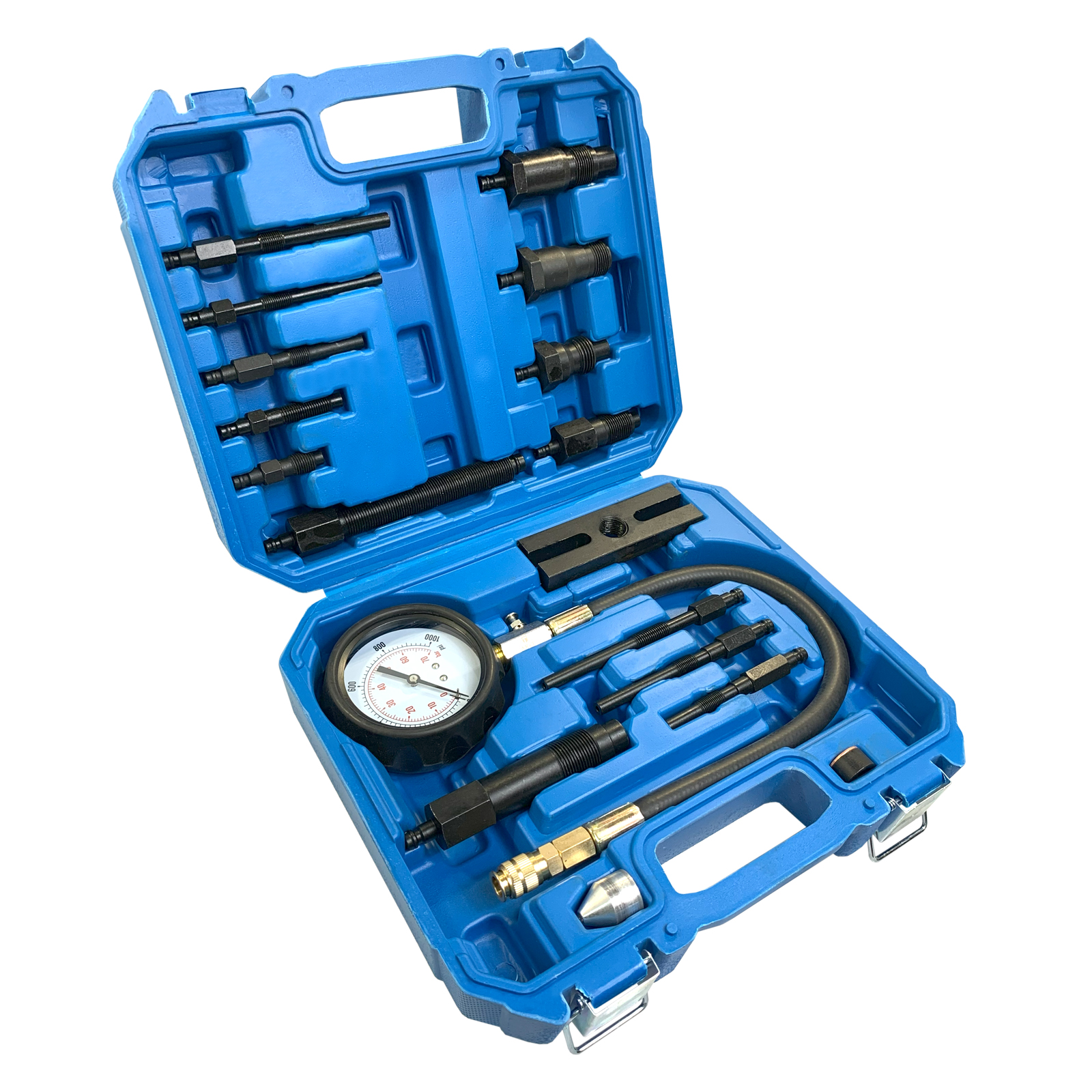 Компрессометр TA-G1011 – профессиональное устройство, которое подойдет для пользования на предприятии высокого уровня, потому что оснащен адаптерами для всех существующих дизельных двигателей — как отечественных, так и зарубежного производства. Помогает в диагностике ГБЦ, соединительных линий, поршневой группы.