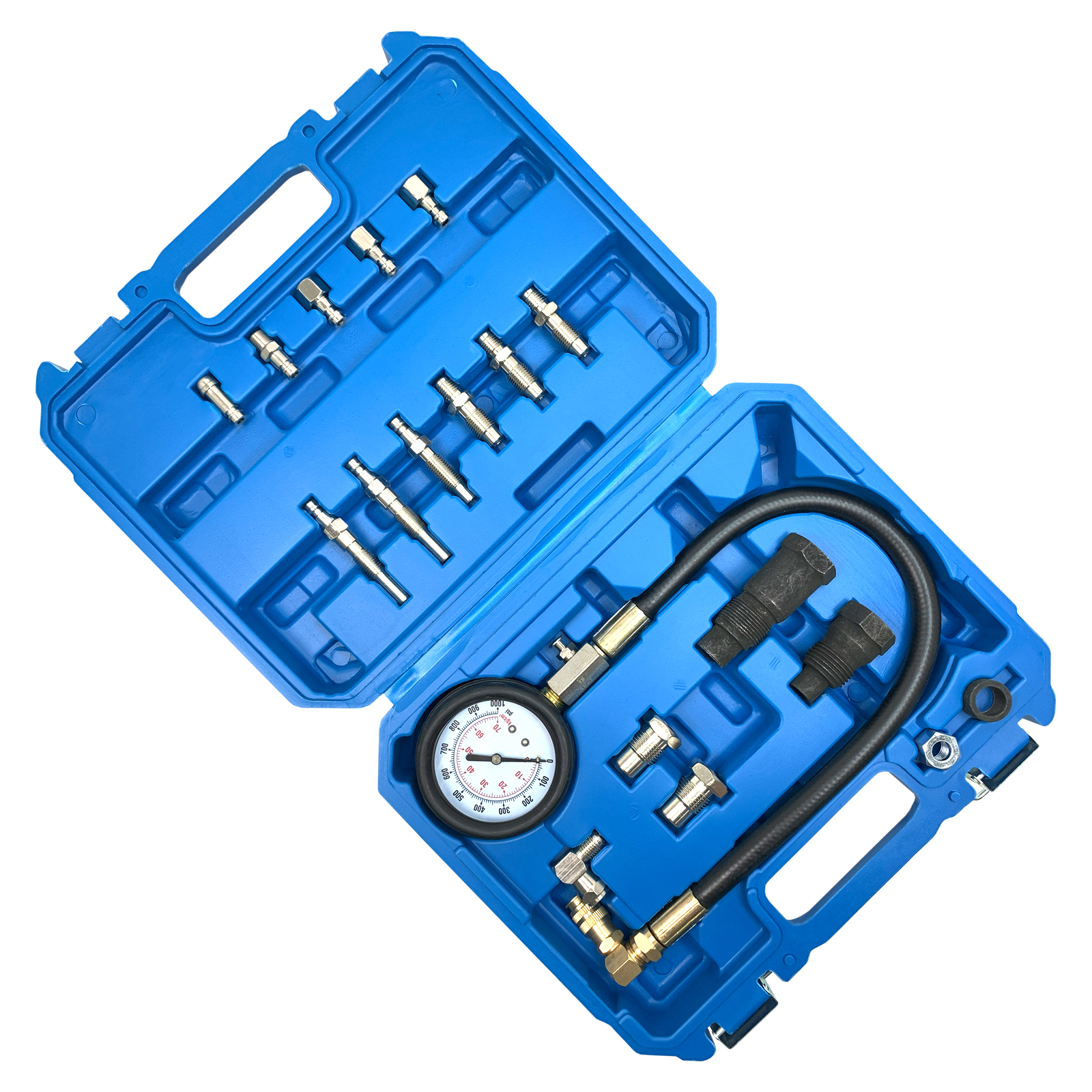 Компрессометр TA-G1010 рассчитан на эксплуатацию с самыми разными дизельными двигателями. Укомплектован манометром повышенного диапазона — от 0 до 1000 psi (0-68 атм). Также в наборе шланг, 15 адаптеров под всевозможные стандарты соединений, чтобы мастер мог пользоваться одним инструментом с большинством техники.