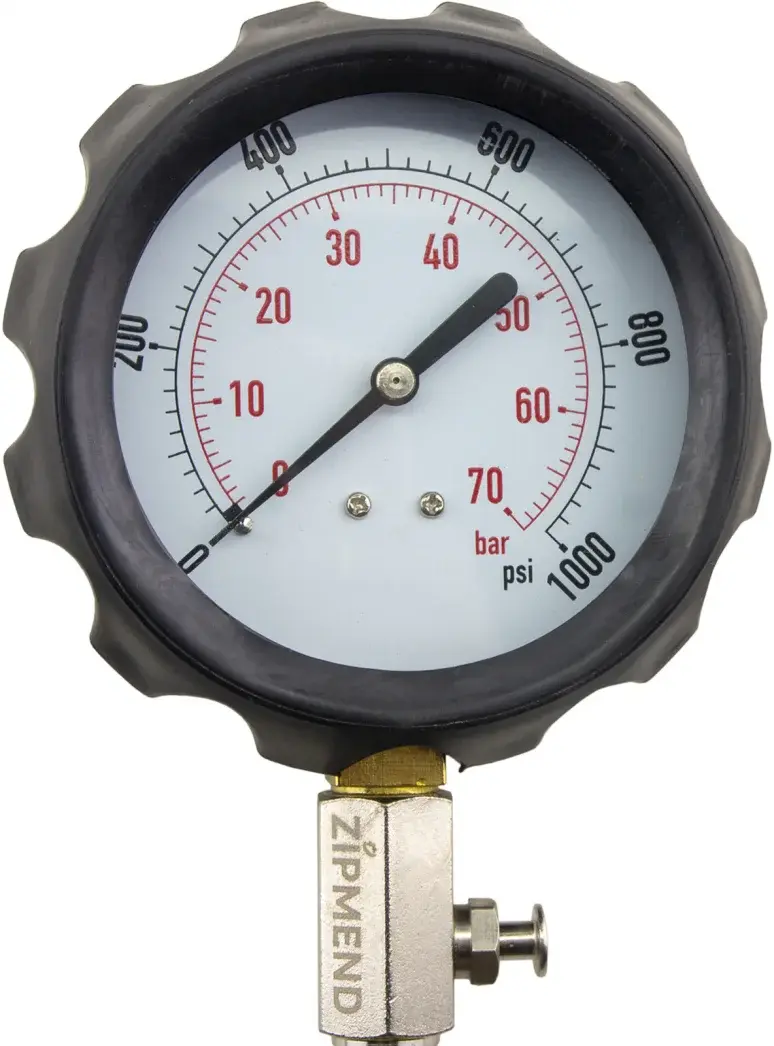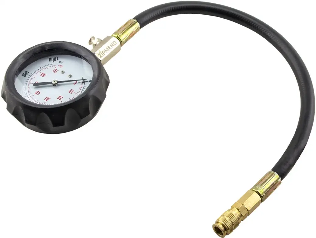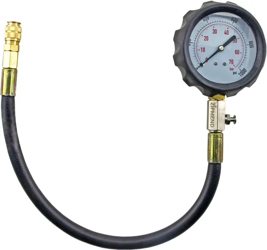 - Манометр 0-70bar (0—1000 psi) с клапаном для сброса давления, гибкий шланг с быстросъемным штуцером.