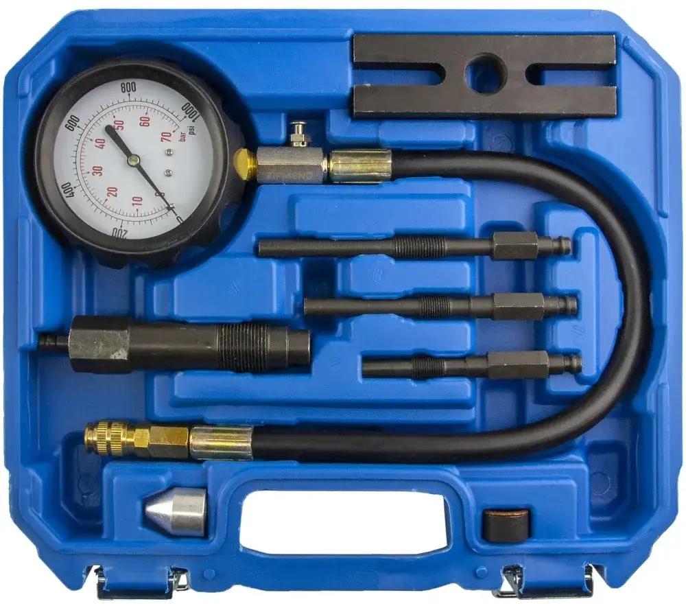 - Позволяет осуществлять замер компрессии через свечное отверстие и через отверстие дизельной форсунки.