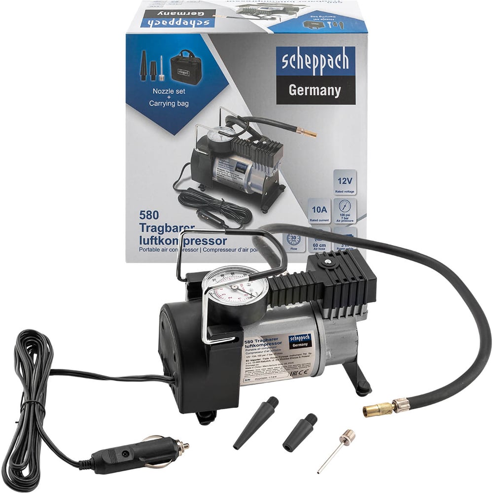 Компрессор автомобильный Scheppach 12V, производительность 30л/мин Sch-580(63200)