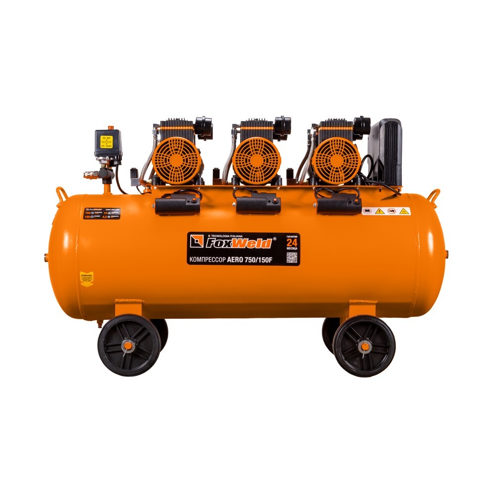 Безмасляный компрессор AERO 750/150F специально разработан для производства сжатого воздуха без примесей масла и совместного использования с пневматическими инструментами (аэрографы, краскораспылители, продувочные пистолеты), а также с иным пневмоинструментом, подходящим по давлению и расходу воздуха. Безмасляные компрессоры не требуют постоянного обслуживания и контроля, благодаря чему прекрасно зарекомендовали себя на рынке. Данное оборудование применяется в областях, где требуется получить чистый сжатый воздух без примесей масла. Например, покрасочные работы компактными краскораспылителями и аэрографами. Отсутствие масла в сжатом воздухе позволяет добиться идеального качества обрабатываемой поверхности. Для удобства транспортировки AERO 750/150F оснащен двумя удобными ручками и четырьмя колёсами для транспортировки.БОКОВЫЕ ВЫХОДЫ НА РЕСИВЕРЕ: Данная модель компрессора оборудована двумя боковыми выходами на ресивере, что позволяет подключить дополнительные пневмоинструменты.НИЗКИЙ УРОВЕНЬ ШУМА: Данный компрессор отличается очень низким уровнем шума - всего 73 дБ(А), что обеспечивает комфортную работу в любое время дня без помех для окружающих.3 НЕЗАВИСИМЫХ ДВИГАТЕЛЯ: Компрессор оборудован тремя независимыми двигателями. При запуске они включаются последовательно один за другим. На корпусе расположен блок управления для включения или выключения необходимого количества двигателей в зависимости от мощности подключаемого инструмента для экономии энергопотребления и понижения уровня шума от работы компрессора. Запуск каждого двигателя происходит нажатием на его порядковый номер на блоке управления.ПРЕИМУЩЕСТВА:Подаёт чистый воздух без примесейМалошумныйОбеспечивает высокую производительностьБлок управления двигателемМедная обмотка увеличивает срок службы оборудованияЗащита от перегрузкиЗащита от перегреваДва боковых выхода на ресивереБыстросъёмное подключение Rapid F – 2 штМаксимальное давление 10 барКОМПЛЕКТАЦИЯ: Компрессор безмасляный AERO 750/150F – 1 шт.; Колёса (с комплектом для крепления) – 4 шт.; Воздушный фильтр – 6 шт.; Инструкция + Гарантийный талон – 1 компл.*Производитель оставляет за собой право вносить изменения в комплектацию оборудования без предварительного уведомления покупателя.