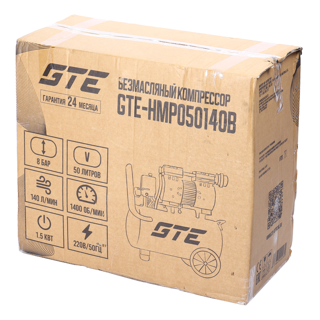 Безмасляный компрессор 220 В, ресивер 50 л, 140 л/мин.