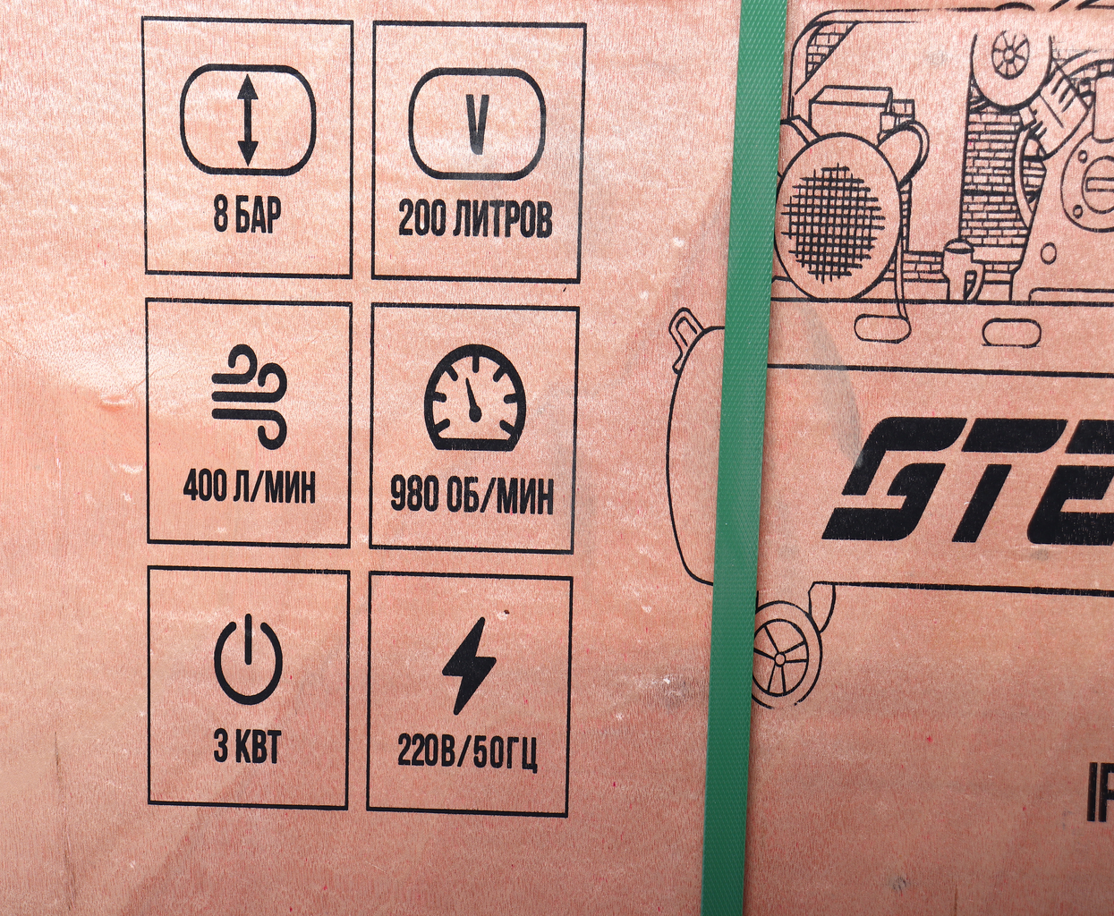 Объем ресивера: 200 л;