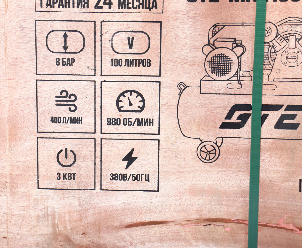 Компрессор поршневой с ременным приводом 380 В, ресивер 100 л, 400 л/мин.