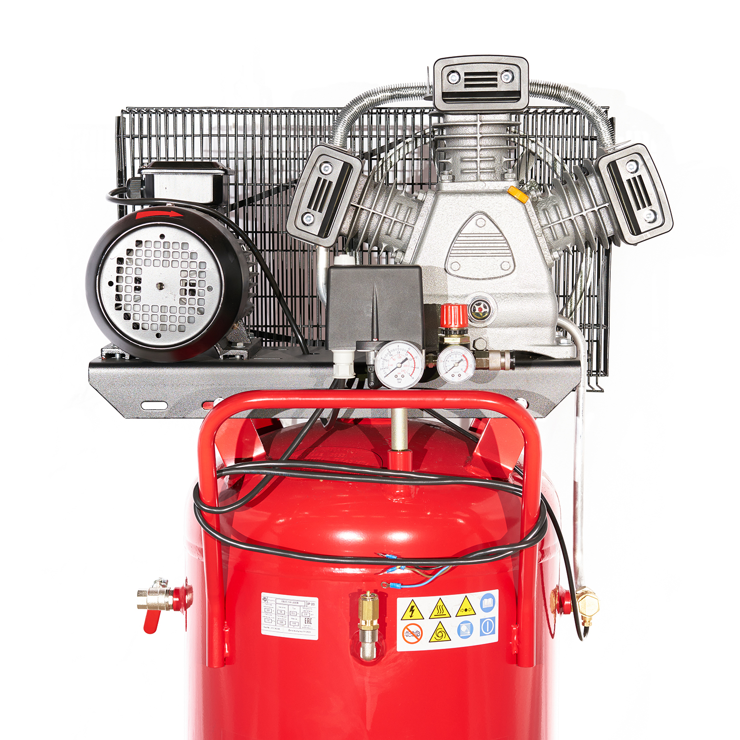 Компрессор ROSSVIK СБ4/С-100.LB40В, 580 л/мин, 10 бар, вертикальный 100 л, 380 В/3 кВт, красный