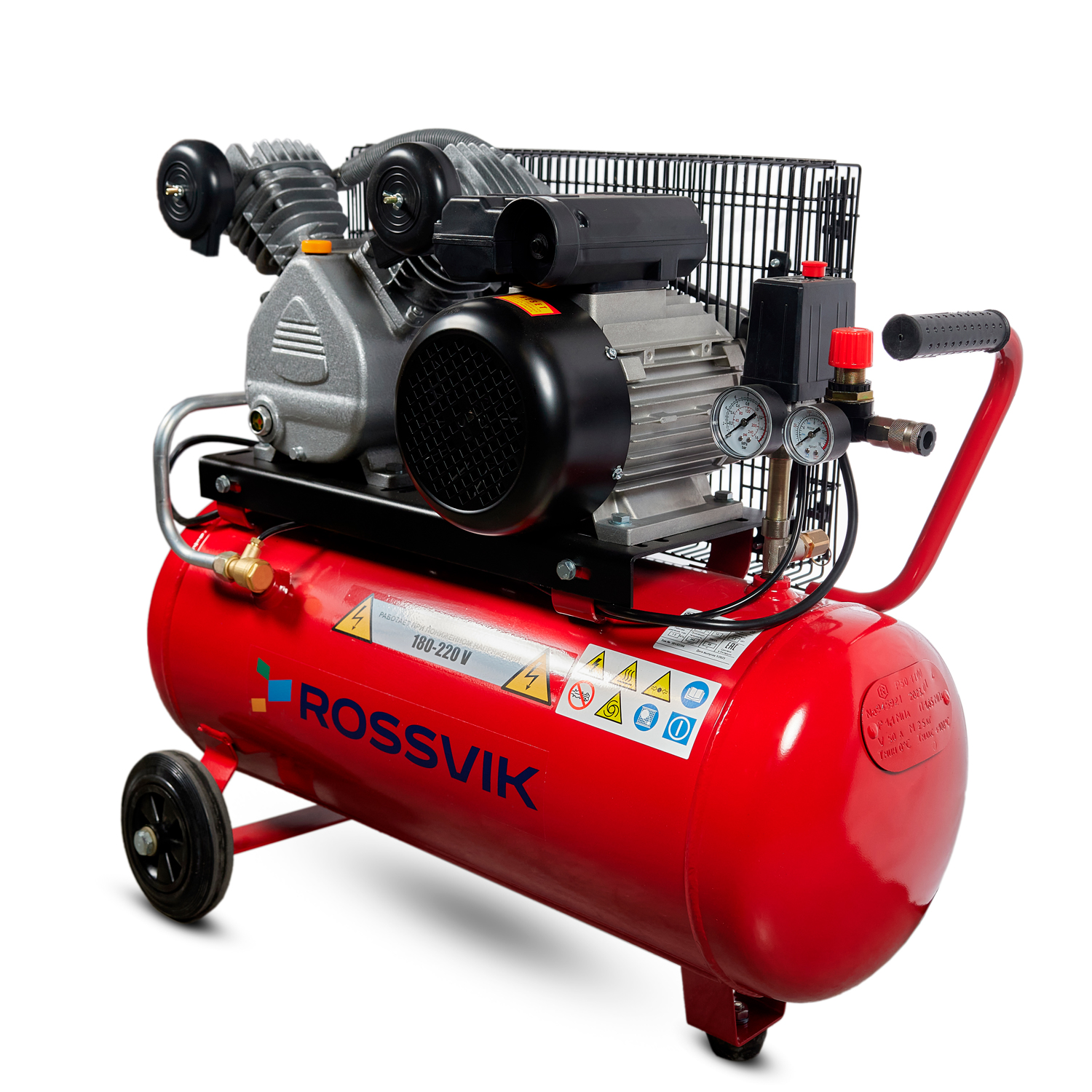 Компрессор ROSSVIK СБ4/С-50.LB24А, 360л/мин, 10бар, ресивер 50л, 220В/2,2кВт, красный