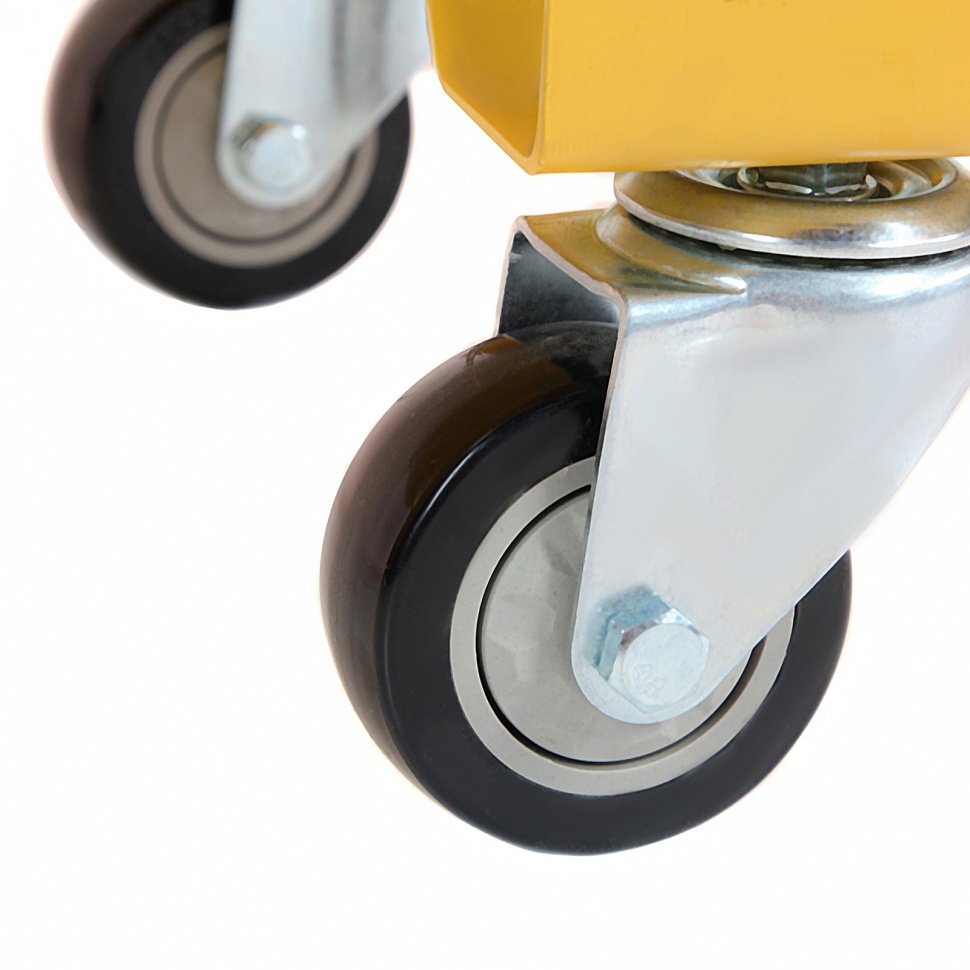 Удобная транспортировка — на компрессоре установлены колеса, в т. ч. поворотные, и П-образная ручка.