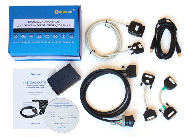 АВТОАС-КАРГО поставляется в полном комплекте вместе со всеми необходимыми для работы кабелями и переходниками или в базовом комплекте только с диагностическим кабелем «OBD-II 24».