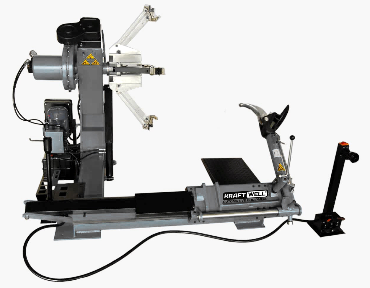 Станок шиномонтажный для колес грузовых автомобилей и автобусов, 2,2+2,2 кВт, 380 В, диаметр дисков 14-42", максимальный диаметр колеса 2300 мм (90"), ширина колеса до 1050 мм (41"), вес колеса до 1200 кг., универсальный 4-х кулачковый зажим, мобильная стойка управления. Может использоваться с камерными и бескамерными колесами.