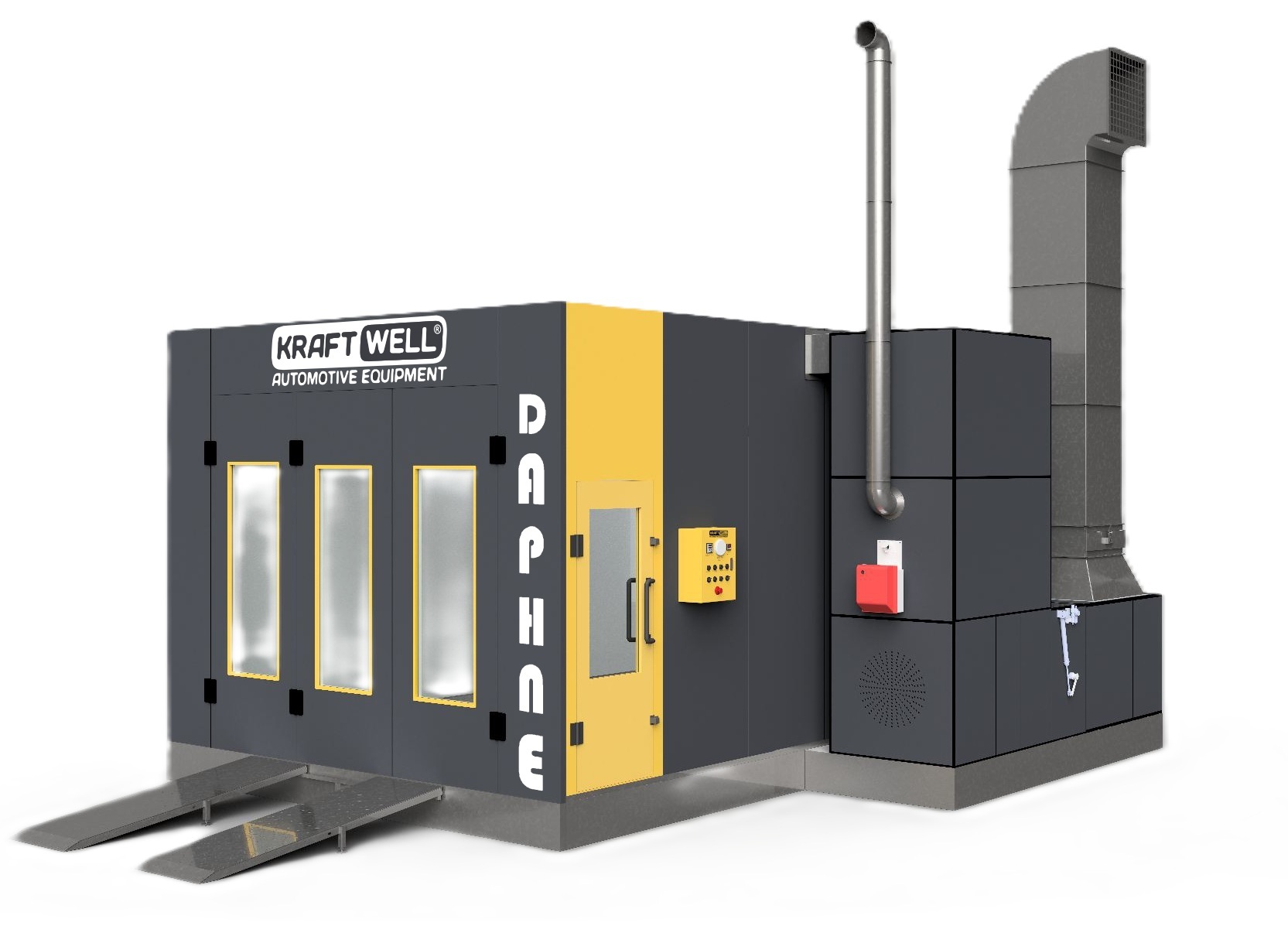 Покрасочно-сушильная камера 6,9 х 3,9 х 2,7 м., 5,5 и 5,5 кВт, 20 000 м3/ч, дизельная двухступенчатая горелка, освещение верхнее наклонное 8х4х18=576 Вт, тепловая мощность 202 кВт, 3-х створчатые ворота, сервисная дверь, металлическое основание
