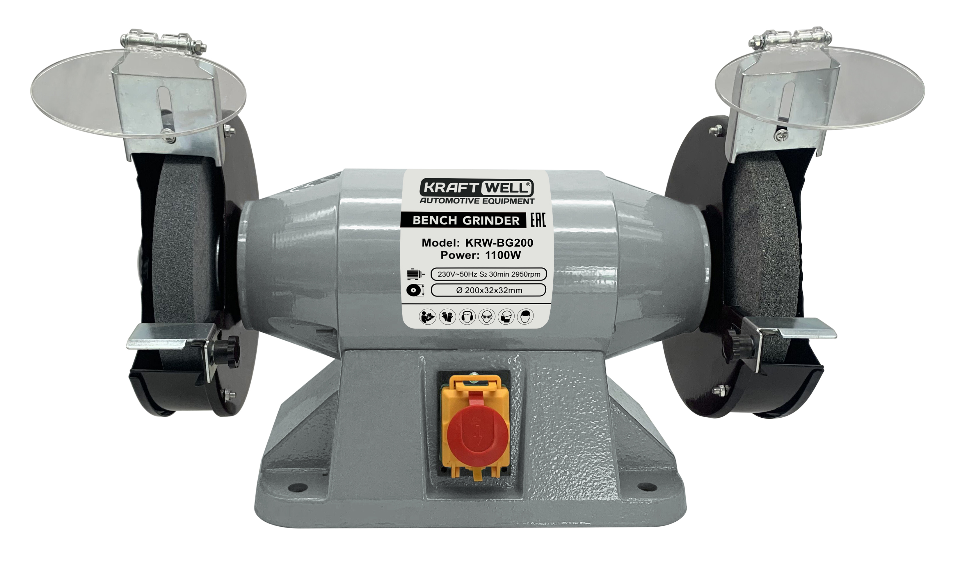 Заточной станок настольный. Мощность 1100 Вт, диаметр дисков 200 мм, скорость вращения 2950 об/мин