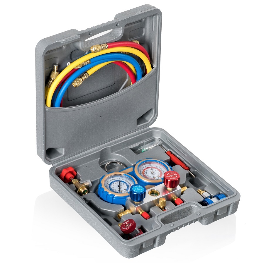 Комплект для тестирования и заправки фреона в системы кондиционирования. Манометрический коллектор, комплект шлангов, комплект БРС, кейс