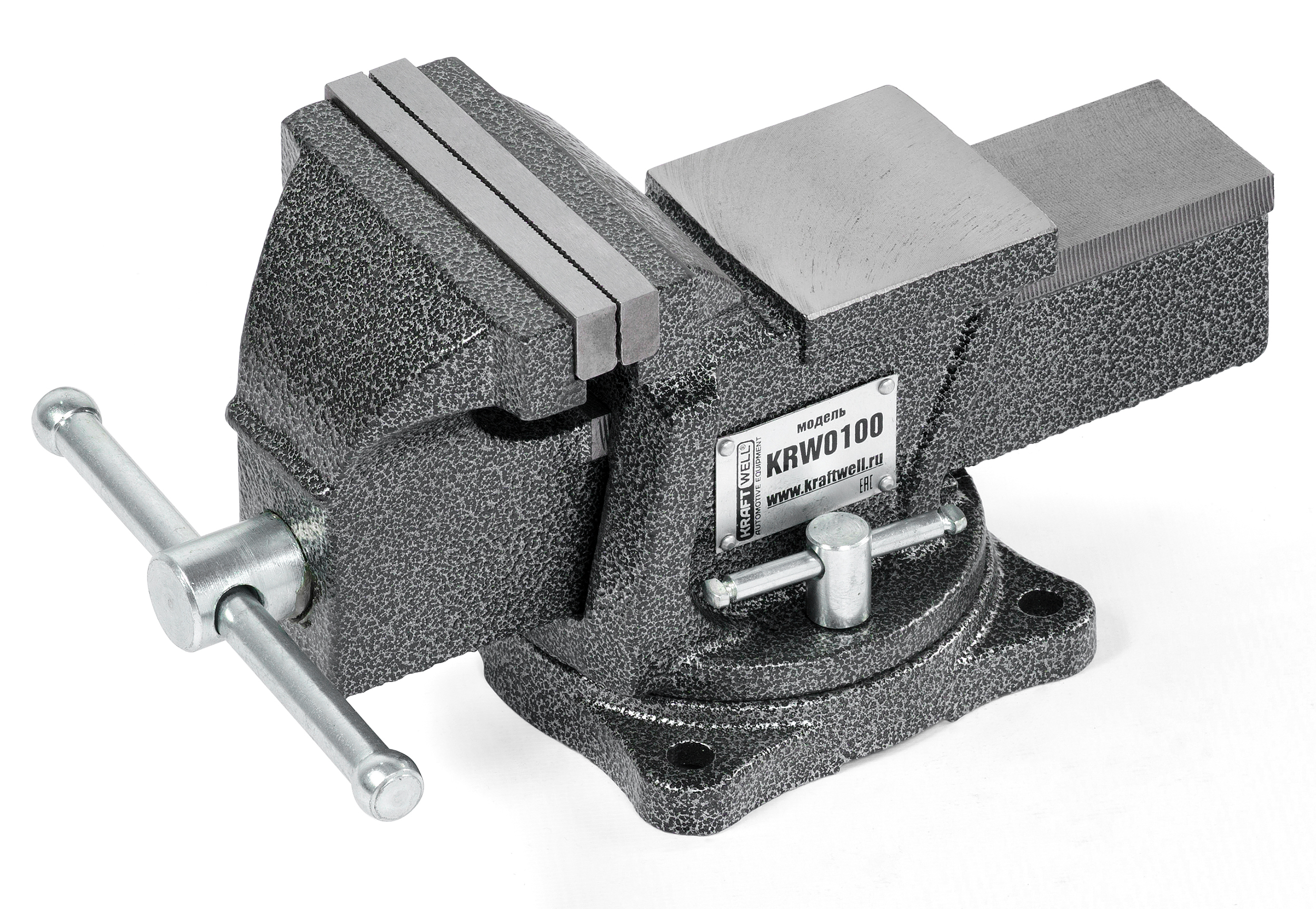 Тиски слесарные вращающиеся чугунные с шириной губок 100 мм и большой наковальней