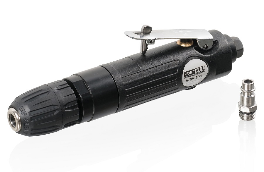 Пневматическая дрель, прямая с патроном 3/8", зажим сверла диаметром от 1 до 10 мм, скорость вращения 3500 об/мин.