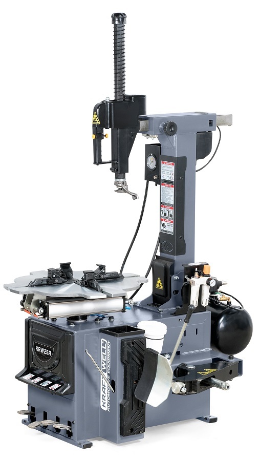 Станок шиномонтажный автоматический, поворотный стол специальной формы, 1,1 кВт, 220 В, 8-10 бар, диаметр дисков снаружи 10-24", изнутри 12-26", диаметр колеса до 1040 мм (40"), ширина колеса до 355 мм (14"), отжимное усилие 2500 кг.