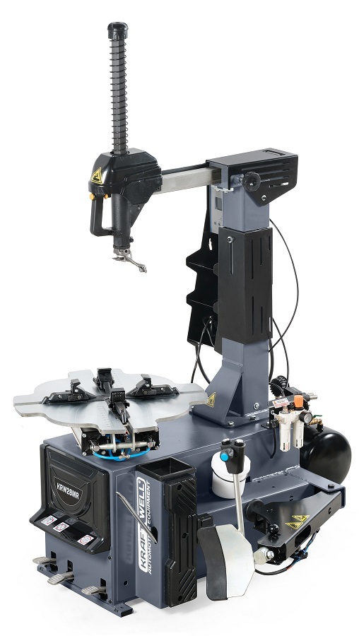Станок шиномонтажный автоматический, поворотный стол специальной формы, ИНВЕРТОРНЫЙ ДВИГАТЕЛЬ 220 В, 8-10 бар, диаметр дисков снаружи 10-26", изнутри 12-28", диаметр колеса до 1040 мм (40"), ширина колеса до 355 мм (14"), отжимное усилие 2500 кг.