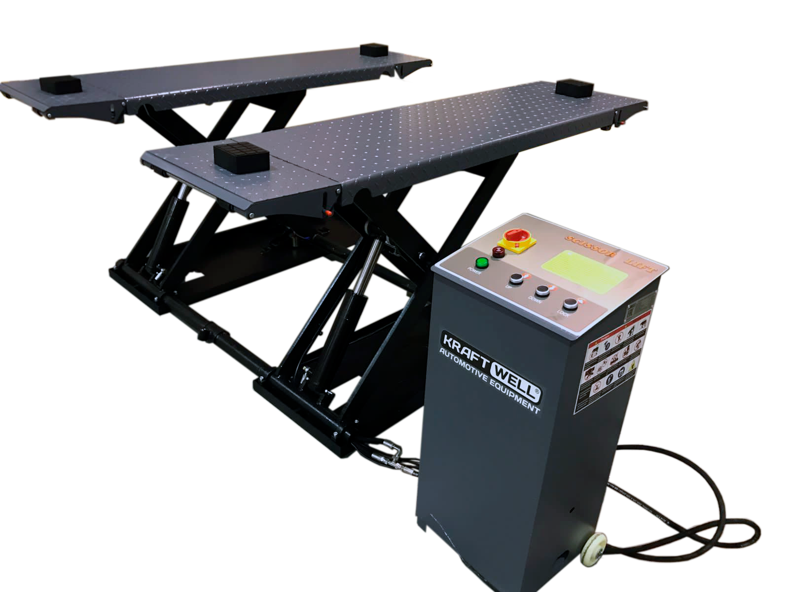 Подъемник ножничный, электрогидравлический, г/п 3000 кг., 380 В,, 2,2 кВт, высота подъема 1000 мм., размеры платформ 1400-1985х460 мм., клиренс 110 мм.