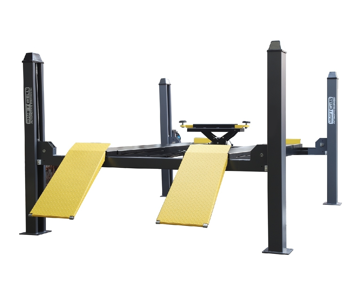 Подъемник четырехстоечный, электрогидравлический, г/п 4000 кг., 2,2 кВт, высота подъема 1800 мм., размеры платформ 4320х520 мм, платформы для сход-развала