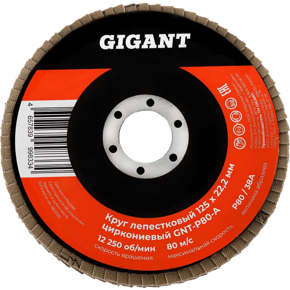 Круг лепестковый 125х22,2 мм; P80; цирконий Gigant Professional GNT-P80-А