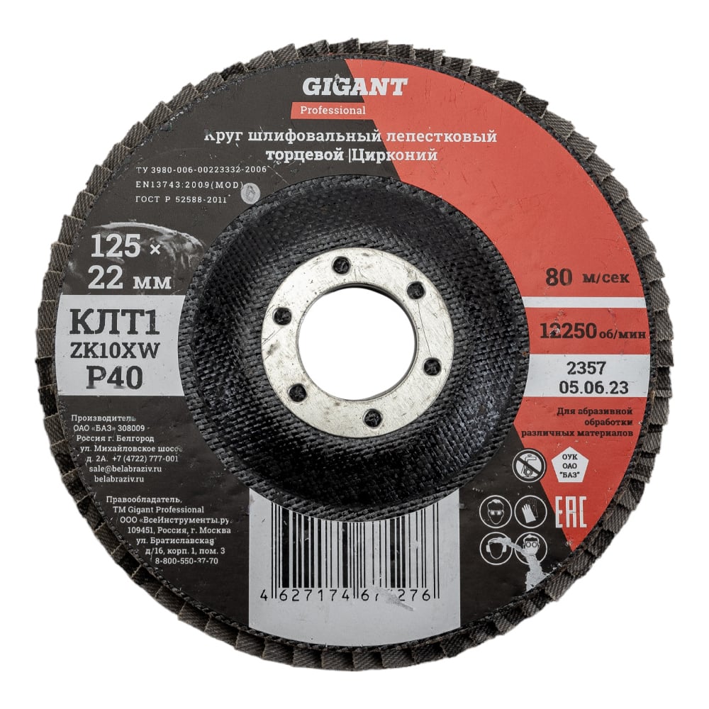 Круг лепестковый Professional 125х22.2 мм, P40, цирконий Gigant GNT-P40