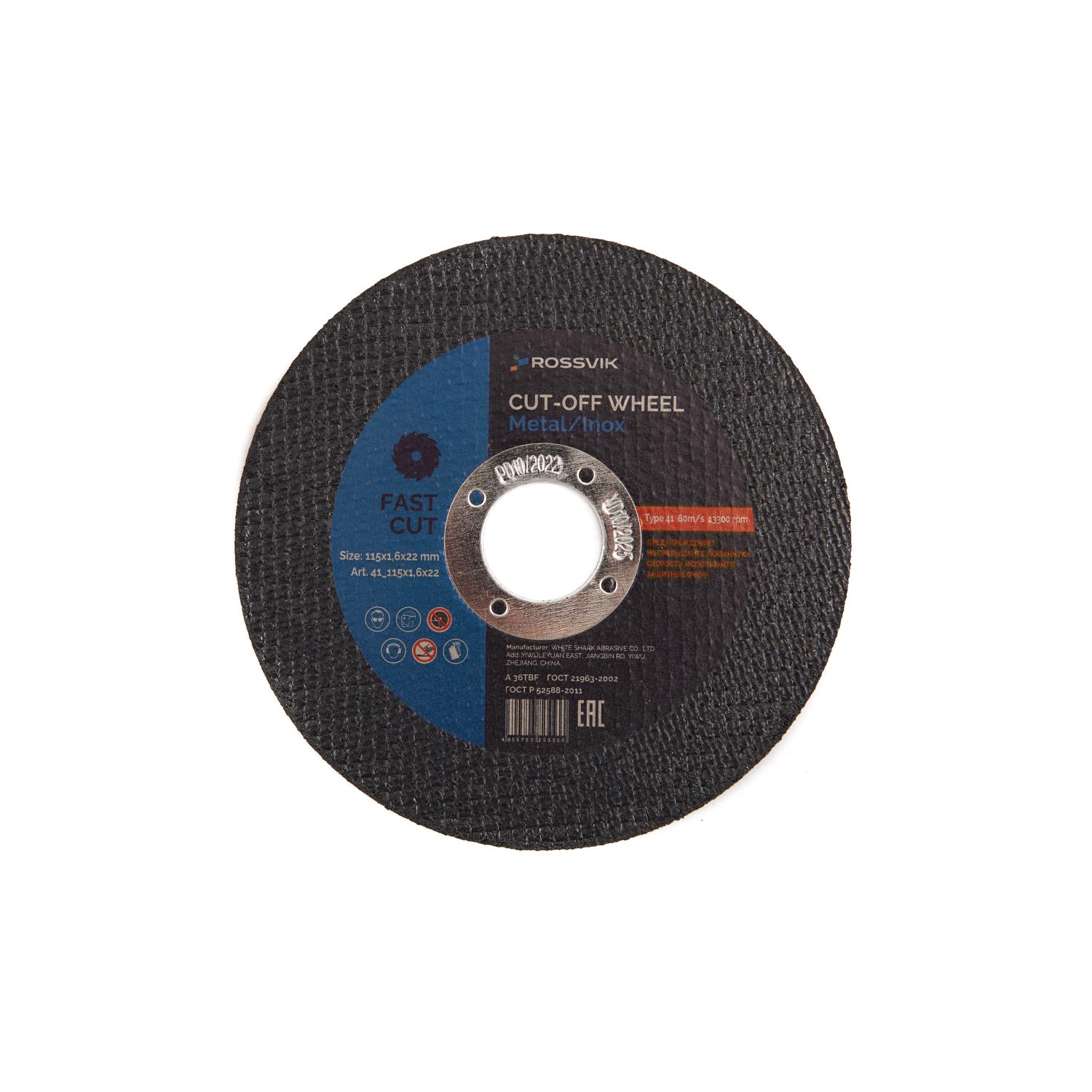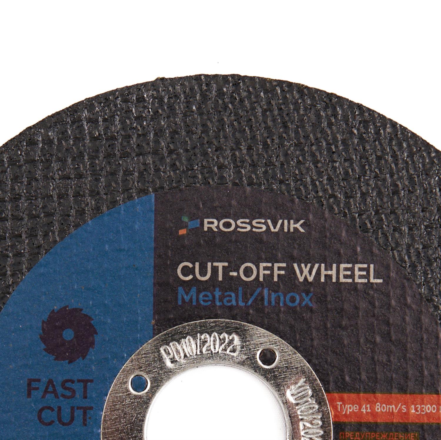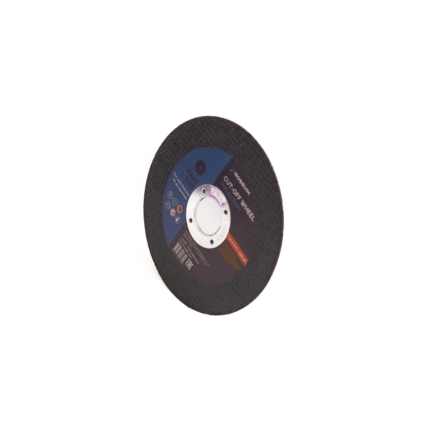 Круг отрезной по металлу ROSSVIK 115*1,6*22мм. Тип 41, 80м/с, 12250об/мин