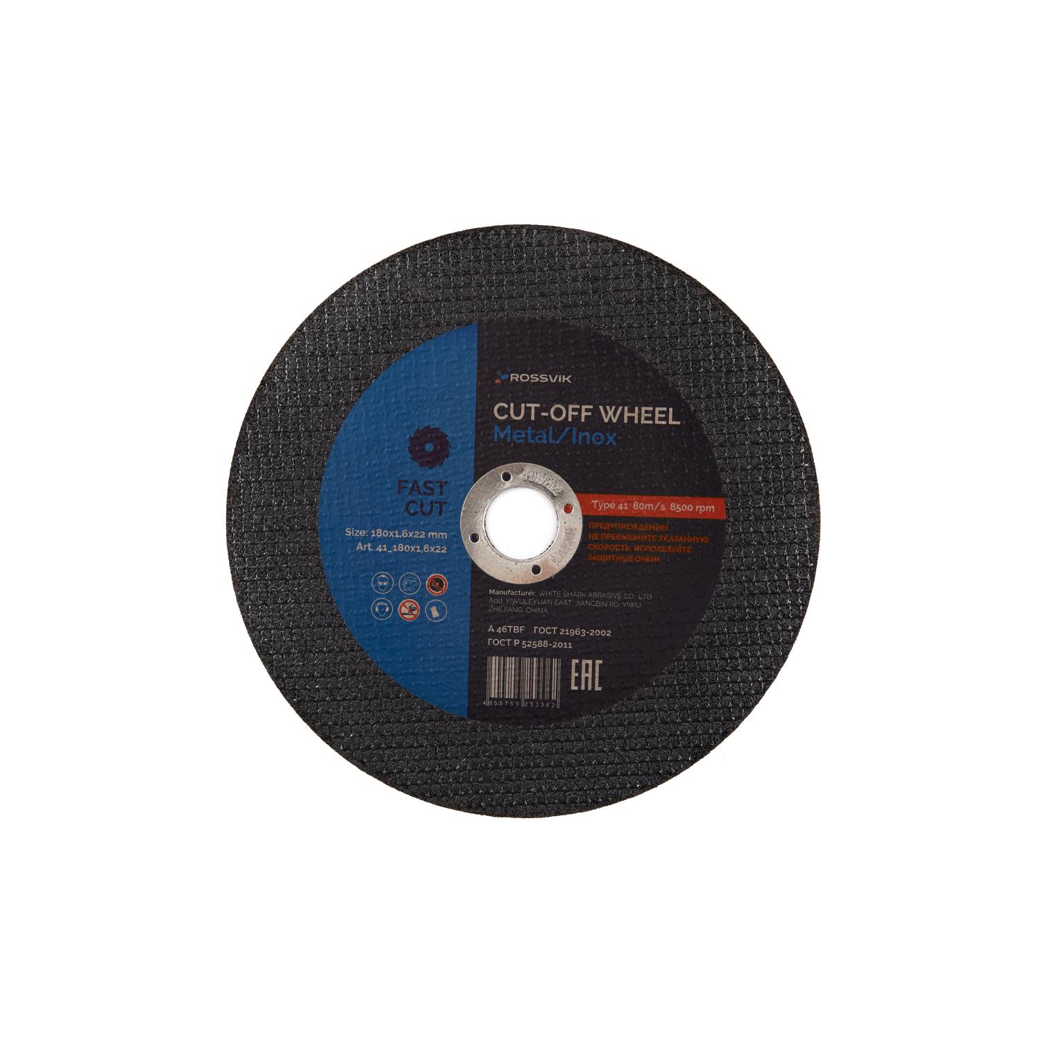 Круг отрезной по металлу ROSSVIK 180*1,6*22мм. Тип 41, 80м/с, 8500об/мин