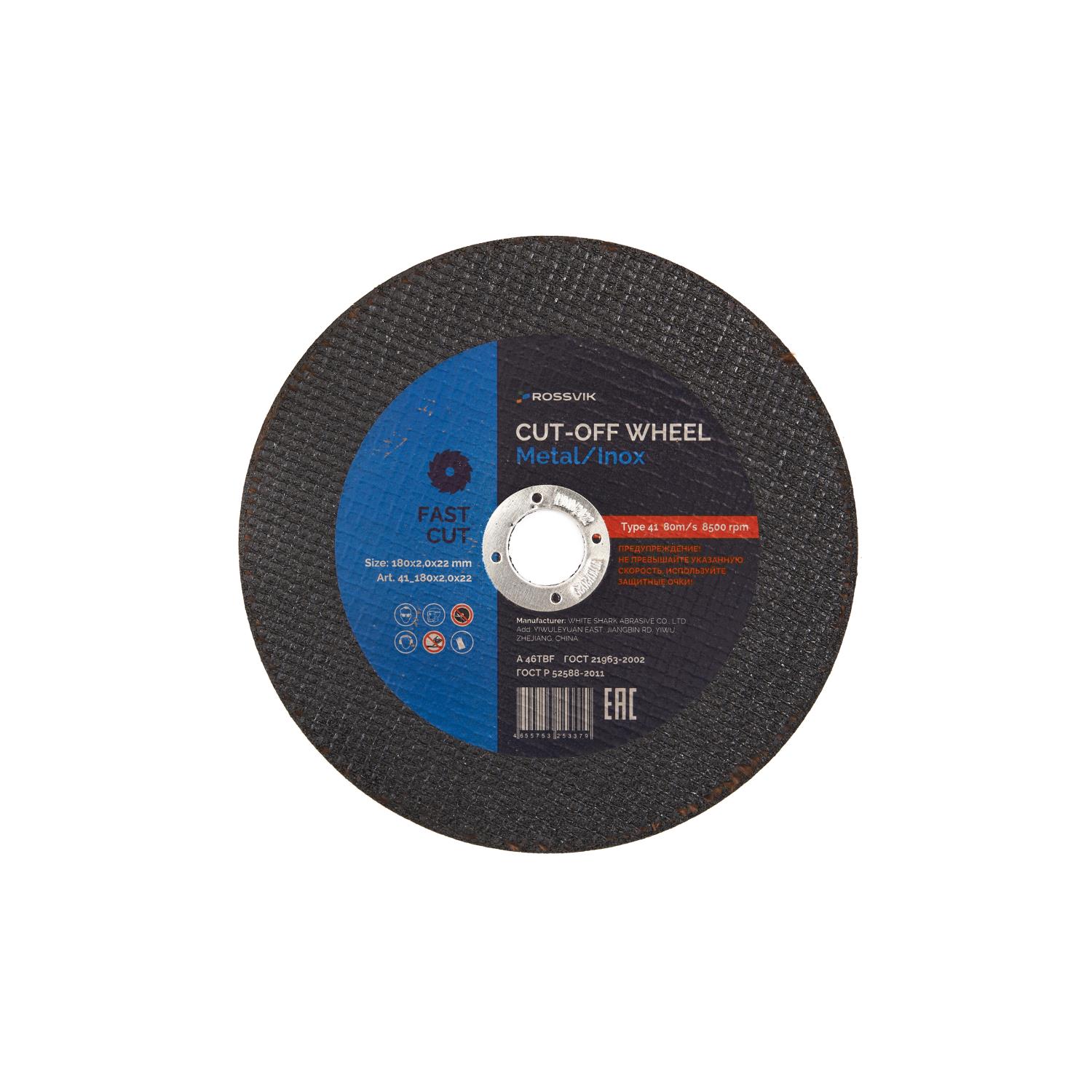 Круг отрезной по металлу ROSSVIK 180*2,0*22мм. Тип 41, 80м/с, 8600об/мин