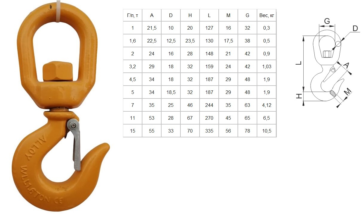 Крюк чалочный поворотный с вертлюгом А-322