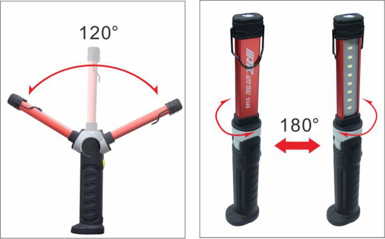 Подошва лампы оснащена мощным магнитом, а сверху предусмотрен крючок;