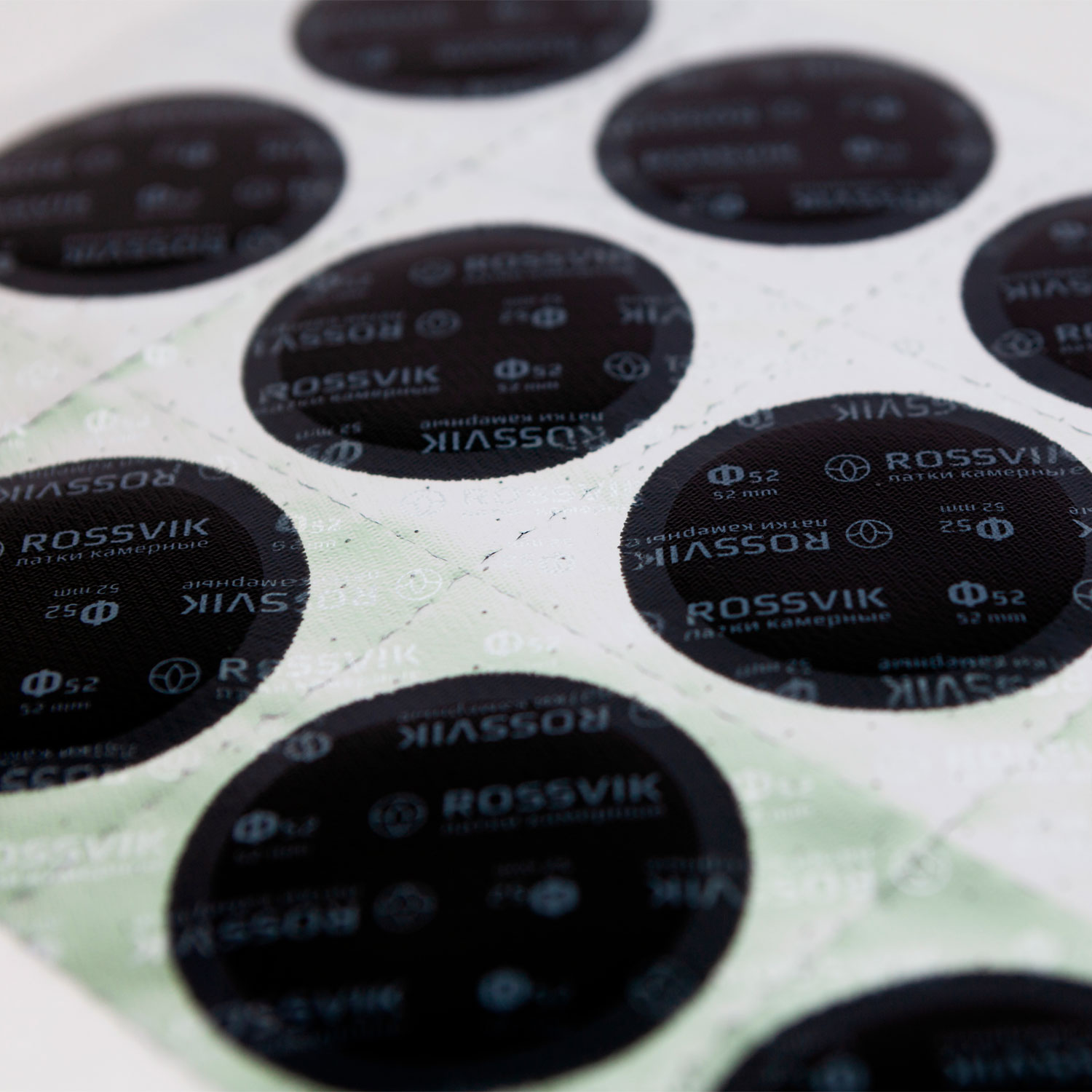 Пластичный химический слой латки идеально заполняет неровности ремонтируемой поверхности и под действием клея-активатора Rossvik в процессе “холодной вулканизации” латка становится прочнее самой камеры.