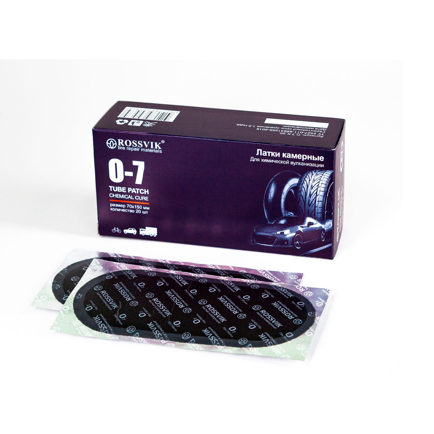Овальные латки Rossvik предназначены для ремонта разрывов автомобильных камер любого типа.