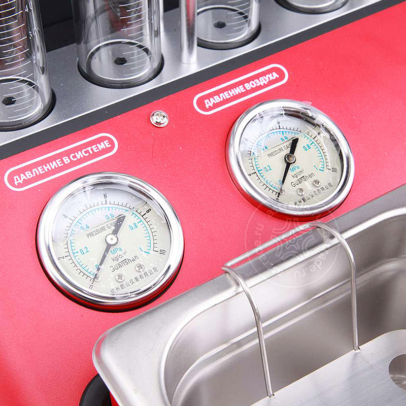 - Тестирует и очищает до 6 форсунок одновременно
