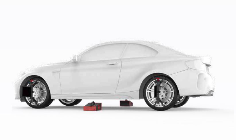 - Идеальное решение для ремонтных канав: два измерительных модуля размещаются на полу для диагностики геометрии колес.