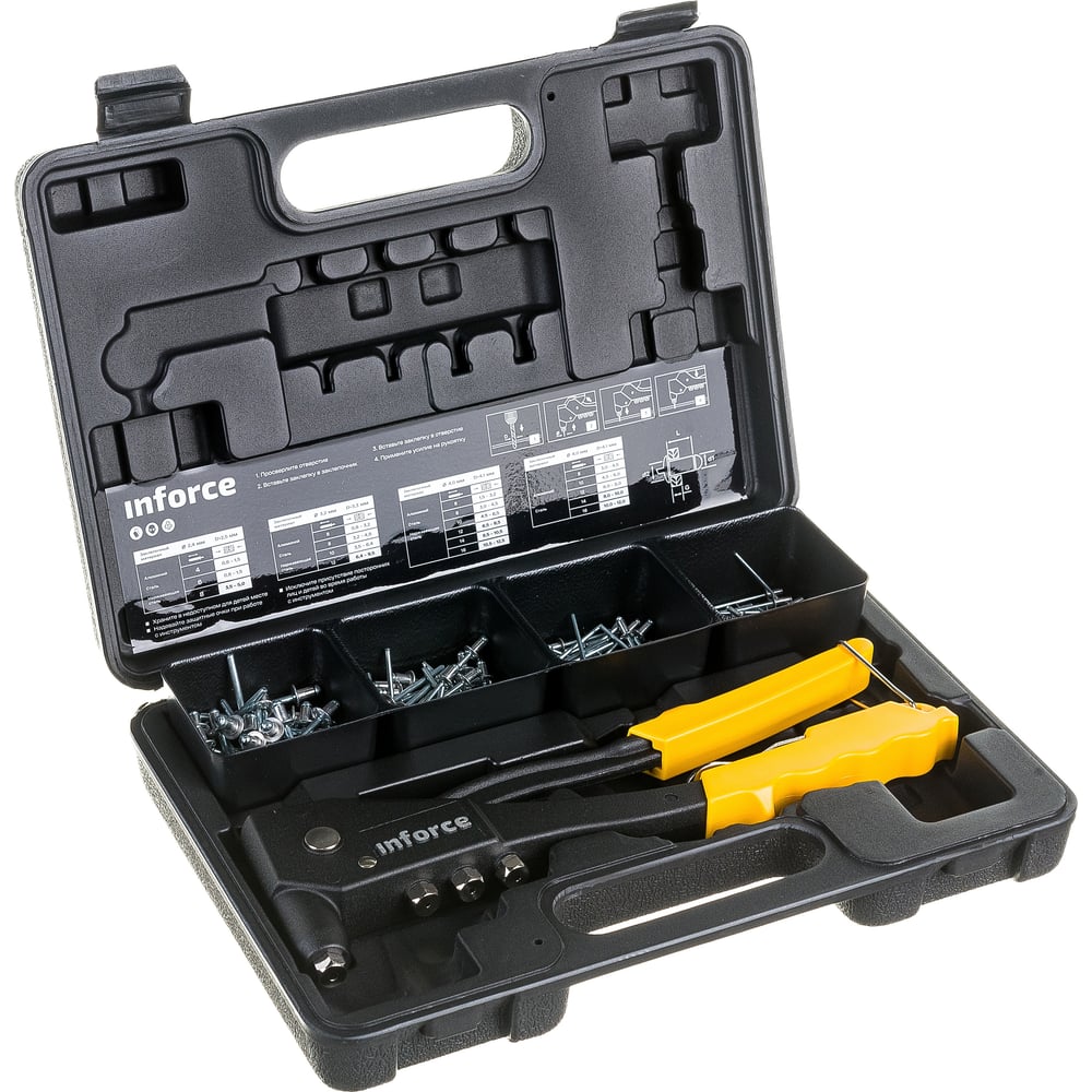 Литой ручной заклепочник Inforce в кейсе, с набором заклепок 2.4-4.8 мм 06-14-101