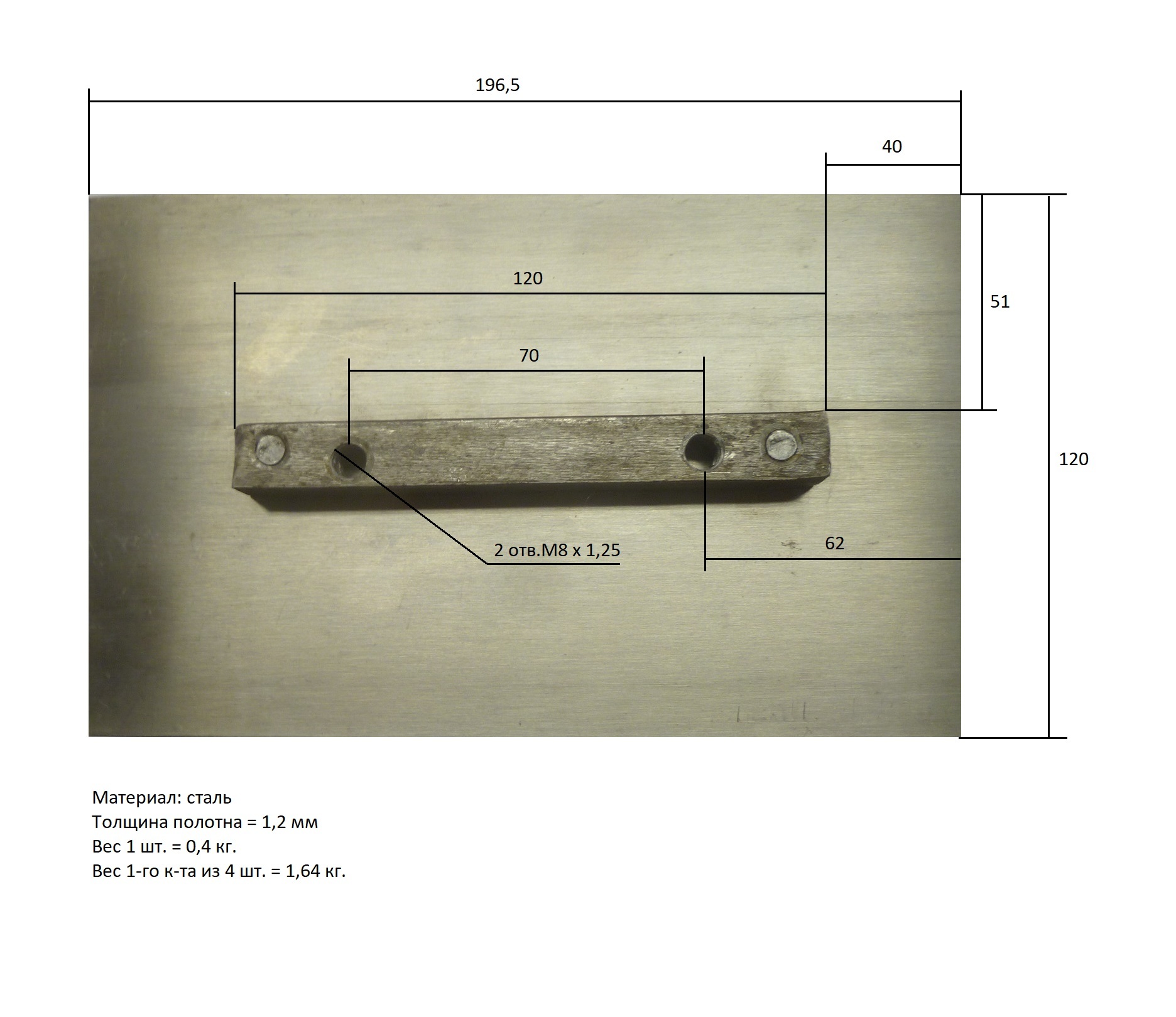 2)Планка с отверстиями (2) М8 межцентровое =70 мм.
