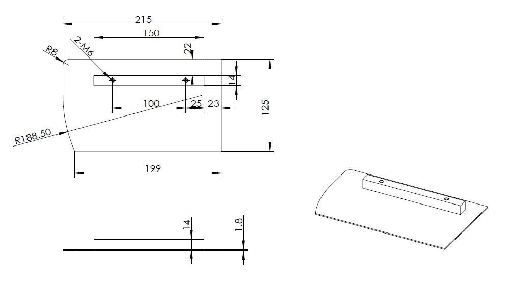 1)Пластина :длина =211,5 мм,ширина =128 мм