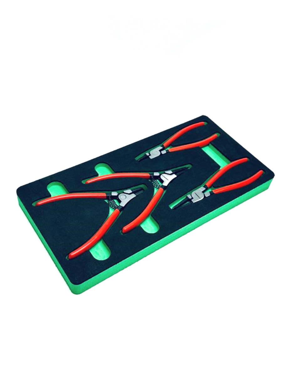 Съемники стопорных колец Станкоимпорт ложемент TP-4U помещены в удобный ложемент, который изготовлен из EVA (этилен винил ацетат) пены. Данный материал обладает высокой стойкостью к агрессивным средам и механическим воздействиям. Съемник изготовлен из высококачественной инструментальной кованной стали, защиту от коррозии обеспечивает оксидированное покрытие, эргономичная форма рукояток с защитой из устойчивых к растворителям материалов. Соответствуют требованиям международного стандарта DIN 5254, DIN 525.