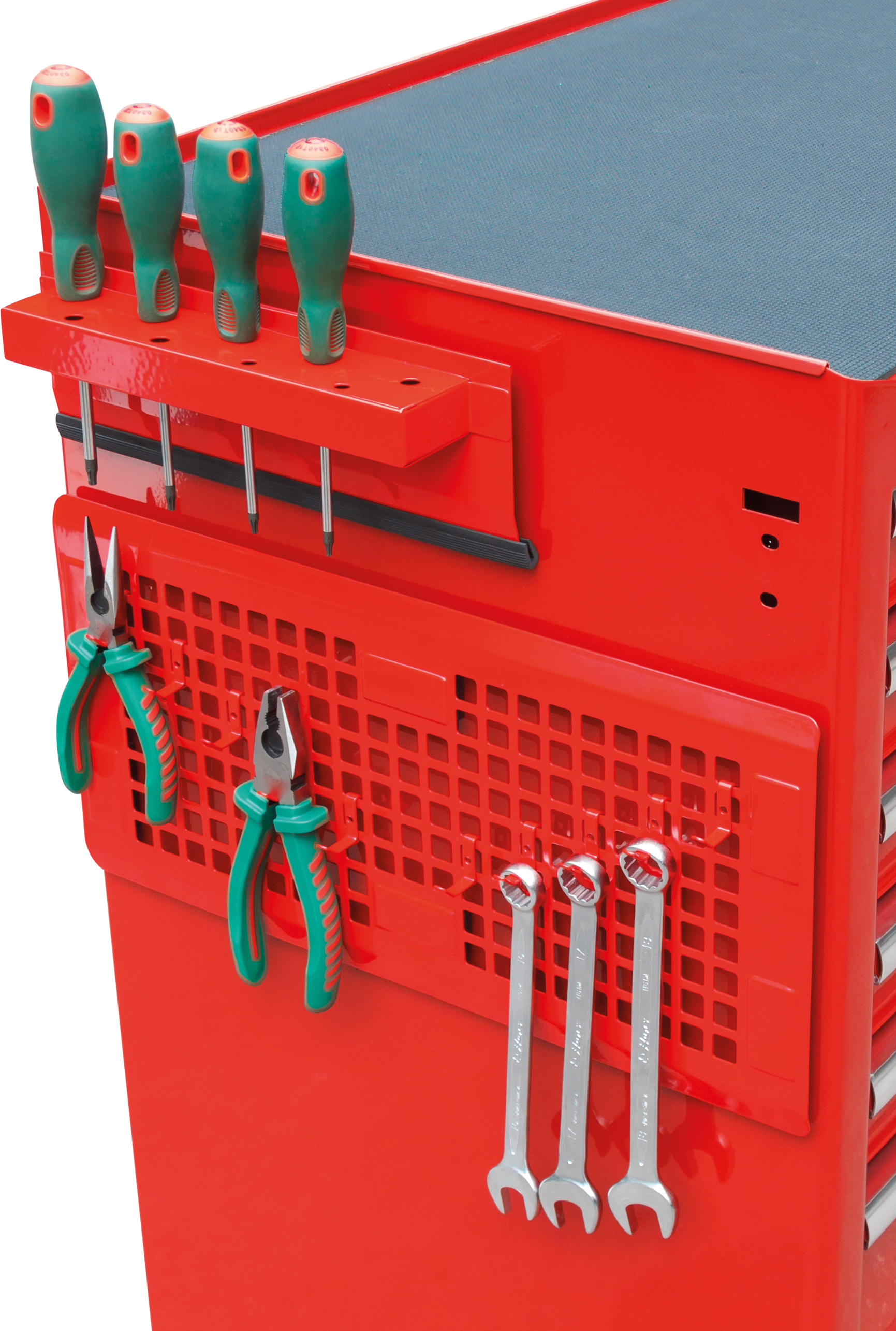 EES-10002SD Магнитный держатель отверток д/тележки • Изготовлен из листовой стали с усиленным порошковым глянцевым покрытием. • Позволяет разместить до 9 штук отверток. • Легко прикрепляемый к инструментальной тележке или любой ферромагнитной металлической поверхности. • Задняя поверхность оснащена 4 обрезиненными магнитами, исключающими появление царапин на тележке. • Обеспечивает удобный доступ к вашим инструментам. • Идеально подходит для гаража и авторемонтной мастерской. • Отверстья для отвёрток: Ø 7 мм – 2 шт; Ø 9 мм – 4 шт; Ø 11 мм – 3 шт. • Максимальная нагрузка: 2,5 кг. • Упаковочные размеры: 290х70х110 мм, вес 1,23 кг.