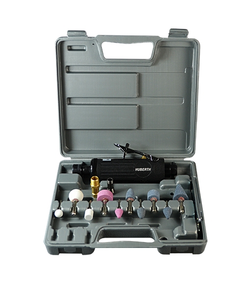 Пневматическая шлифовальная машинка в комплекте с набором из 10 шлифовальных камней-насадок наиболее популярных размеров. Особенности • Компактная, легкая и удобная в работе • В алюминиевом корпусе • С предохранительной защелкой пускового механизма • Цанговый зажимной патрон. В комплекте поставки - прямая пневматическая машинка с патроном; - набор шлифовальных насадок, 10 шт.; - ключ; - ниппель быстроразъемного соединения; - пластмассовый кейс.