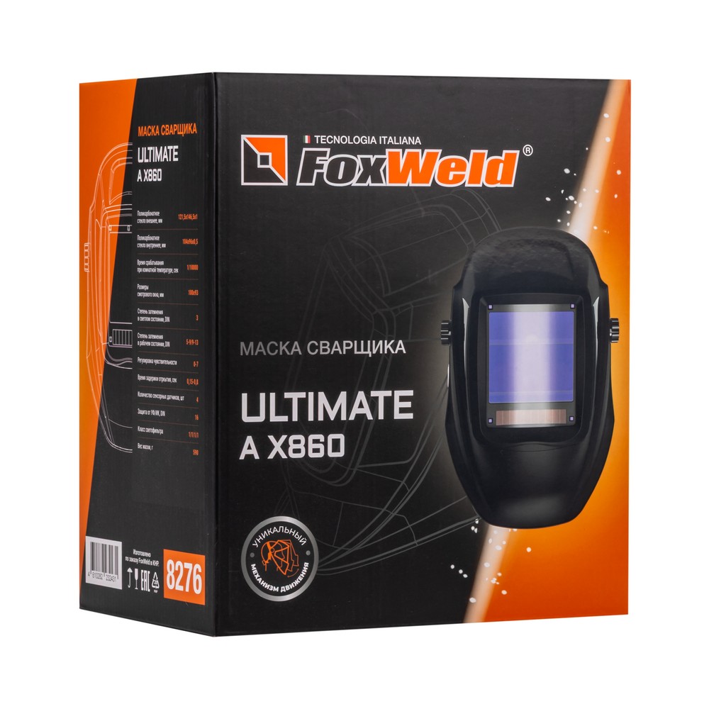 Сварочная маска A X860 серии Ultimate предназначена для защиты глаз, лица и шеи сварщика от вредного ультрафиолетового излучения, искр и брызг расплавленного металла. Уникальная конструкция механизма движения оголовья снижает нагрузку на шею и голову, а также облегчает работу в ограниченном пространстве. 2 дополнительных боковых самозатемняющихся окошка позволяют работать в производственных условиях при близком расстоянии от других специалистов.4 ОПТИЧЕСКИХ ДАТЧИКА: Независимые фотодатчики мгновенно срабатывают при появлении сварочной дуги и поддерживают закрытое состояние светофильтра даже тогда, когда один из датчиков перекрыт каким-либо препятствием. Повышенная чувствительность сенсоров даёт исключительную стабильность обнаружения дуги. Маска оснащена четырьмя независимыми датчиками, что гарантирует срабатывание даже в том случае, если три датчика будут закрыты.УНИКАЛЬНЫЙ МЕХАНИЗМ ДВИЖЕНИЯ: Механизм движения, установленный на оголовье маски, позволяет перемещать щиток в нескольких плоскостях. Это уникальная конструкция механизма движения, которая снижает нагрузку на голову и шею сварщика, а также облегчает работу в ограниченном пространстве.КОМПАКТНАЯ ФОРМА ЩИТКА: Эргономично уменьшенная ширина щитка маски значительно облегчает вес, а следовательно, и нагрузку на голову сварщика.2 ДИАПАЗОНА ЗАТЕМНЕНИЯ: Эта модель маски имеет 2 диапазона степени затемнения: 5 – 9 DIN и 9 - 13 DIN. Первый диапазон больше подходит для плазменной резки, лазерной сварки, ручной, полуавтоматической и аргонодуговой сварки на малых токах. Диапазон 9 – 13 DIN подойдёт для сварки MMA, MIG/MAG, TIG при сварочном токе 125 А и выше.БОКОВОЕ ЗАТЕМНЕНИЕ: Одно из преимуществ этой модели — наличие двух дополнительных боковых самозатемняющихся окошек. В открытом состоянии степень затемнения соответствует 3 DIN, в рабочем состоянии до 16 DIN, что позволяет сварщику проводить работы в комфортном режиме даже в производственных условиях, при близком расстоянии от других специалистов.ПРЕИМУЩЕСТВА:Чувствительность светофильтра в TIG-сварке меньше 2 амперЛёгкий и прочный материал маски, негорючий и стойкий к излучению сварочной дугиОптимальный размер смотрового окна2 диапазона затемнения4 независимых фотодатчика4 вида регулировки оголовьяИндикатор заряда батареиТехнология FULL COLORМаксимальная постоянная защита от невидимого УФ/ИК излучения дугиКомбинированное питаниеСоответствие современным стандартам качества DIN, ISO, EN379ФУНКЦИОНАЛЬНЫЕ ОСОБЕННОСТИ:РЕЖИМ GRIND: Режим шлифовки (Grind) даёт возможность блокировать затемнение светофильтра для использования маски в качестве защитного щитка при работе с УШМ («болгаркой») или шлифовальным инструментом. Кнопка включения/выключения режима удобно расположена с внешней стороны корпуса маски.ВЫСШИЙ ОПТИЧЕСКИЙ КЛАСС: Максимальный оптический класс 1/1/1/1 по параметрам оптический класс светофильтра, степень рассеивания света, однородность затемнения, угловая зависимость позволяет использовать маску при любых режимах сварки, в том числе при профессиональной TIG-сварке.ТЕХНОЛОГИЯ FULL COLOR: Уникальный светофильтр изготовлен по специальной технологии естественной передачи цветов. Технология FULL COLOR позволяет видеть реалистичную картинку во время сварочных работ.КОМПЛЕКТАЦИЯ: Маска сварщика черная Ultimate A X860 в коробке – 1 шт.; Оголовь